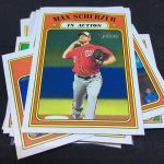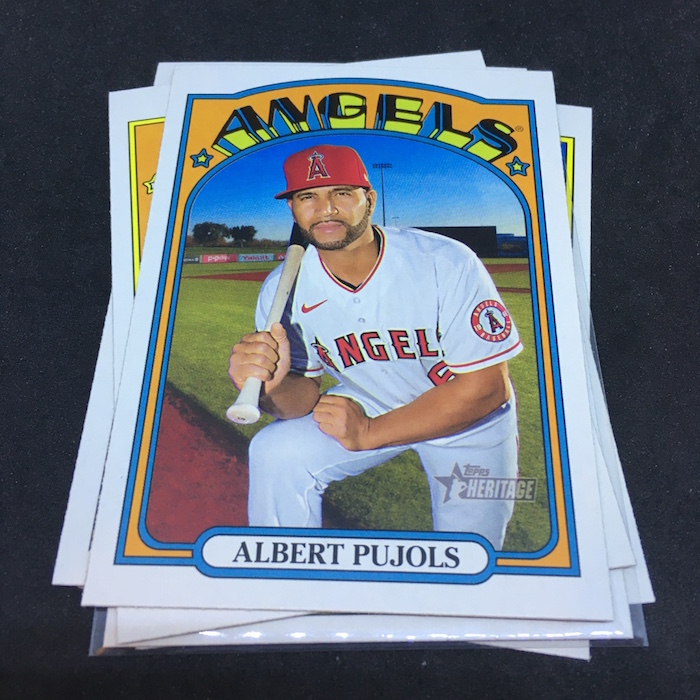 Notables on base cards – Mike Trout, Bo Bichette, Max Fried, Clayton Kershaw, Albert Pujols, Juan Soto, Fernando Tatis Jr., Luis Robert, Max Scherzer, Michael Conforto, Freddie Freeman, Mookie Betts, Jacob deGrom, Ronald Acuña Jr., Cody Bellinger, Joey Votto