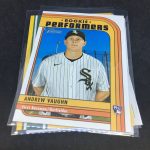 What's Buzz-worthy: If you're just wanting the flip, move to the next format -- or do hobby here -- but for a collector this one feels pretty crisp and clean to continue with the feel of the meaty first release here. This one has dropped early at retail -- delayed until nearly mid-December for hobby -- so we don't even yet have a checklist from Topps yet, but one of my first packs here coughed up one of the better Chrome cards I could find. It's a slab-worthy kind of find, too. Chrome odds here are one in 39 packs, so it gets this box an A ... but I'll not give it a plus since things did feel lean on the insert front otherwise and I did have a number of off-center finds. The rookie volume here is really nice -- 26 RCs out of 225 total cards including the SPs -- so the volume of RCs in the set has to be very strong. I really liked the design of the 1972 World Series inserts and Vaughn is a nice insert find. I'll say more when I rip more -- I have more incoming -- but I do know that the odds aren't all that alluring with ink at one in 510 (pretty normal) but all the stuff we should expect are found here ... Chromes, Minis, French text, errors, missing-star variations, city uni photo variations and nicknames for starters.
