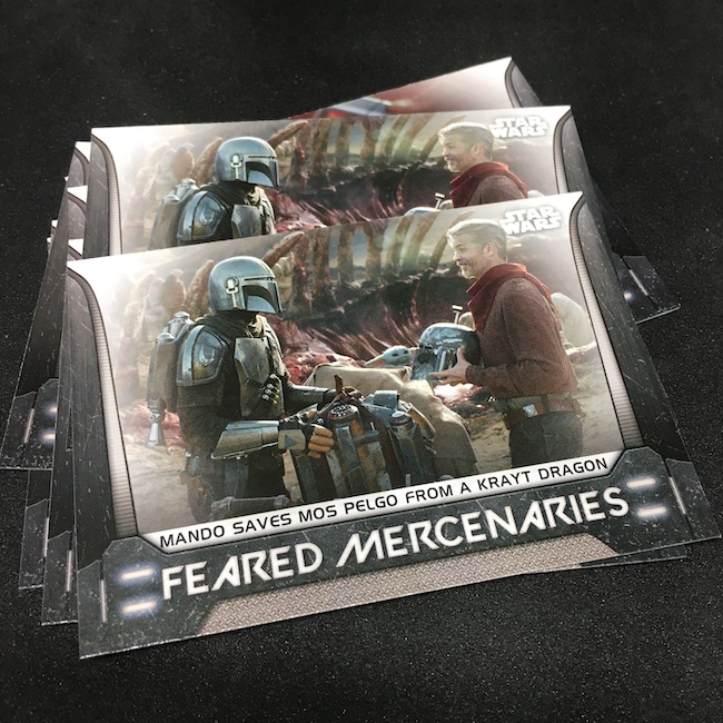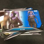 What's Buzz-worthy: This long-delayed release is a bit of a funky one that has a focus on characters from throughout the Star Wars galaxy as part of a big set with tiers -- Bounty 1, Bounty 2 and Bounty 3. Then, atop that, there are parallels. Then, the inserts also have a similar approach with those tied to particular characters with some color-coding to (sort of) help carry that concept though the backs may not always have the correct colors. The Green card here? One in 88 packs. The stock here is more toward the infamously skinny side but the printing and cutting seems clean so no big issues there. The variety here was pretty rough (a low fun grade from me) though a hobby box will be more volume with some hit-chasing involved. I like this one with the all-areas approach of the franchise but the tiers approach is also not a favorite -- and some cards have the Bounty notation somewhat tough to read. This one is quite possibly a one-and-done for me but I might do hobby just to see if there's a little more to it if the price slips. (I don't mind a cheaper box in today's cardboard world.) This one feels like it needed a little more variety among the inserts but the parallel colors look pretty good, too.