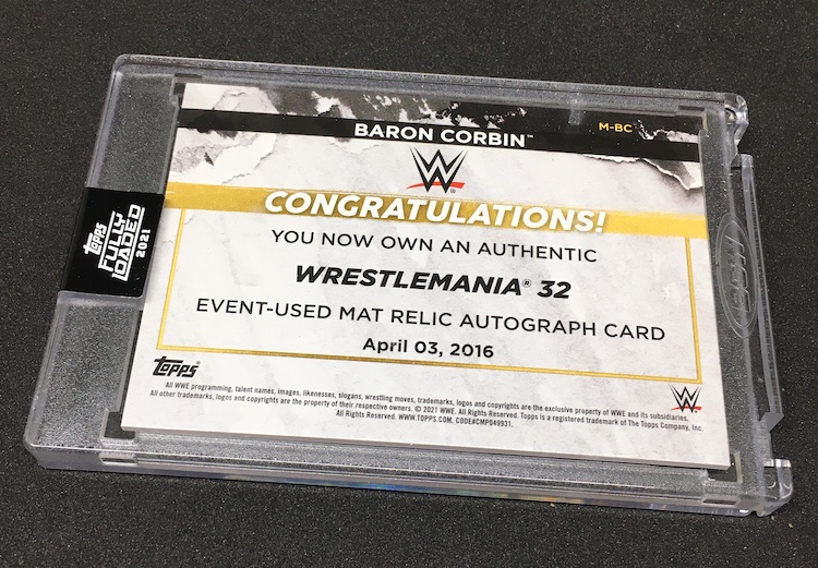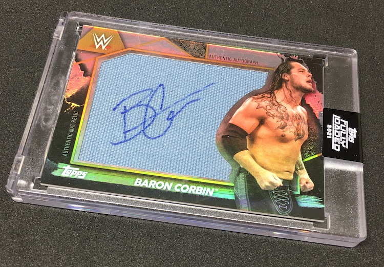 What's Buzz-worthy: This one didn't make the cut for my #BuzzMania6 breaks marathon for March 31 as, well, this one was a low blow in terms of value when I popped the lid ... and that can happen even with a one-hit-per-box release. Corbin is a solid stooge/bully-style heel and has had a ton of storyline evolutions and moments but just isn't a big value guy. How low? Under $10 is not out of the question here as it's not even a parallel ... and those have dipped, too, despite it being an on-mat auto on a meaty piece of used ring mat from WrestleMania 32. This one is a textbook example of how a box having more than one card -- I'd do two hits per box here or add some kind of companion base/insert/parallel format -- can help if you don't land a big name. Of course, these were built to be somewhere around a $40 box and they can still be found around $50-60, though I think the volume has to be dropping daily as there are reasons to rip here. For the most part, I had avoided misses like this in my first three or so boxes I opened back at release time but this one stung. For more thoughts, check out my other breaks ... and be here on March 31 for a ton of WWE action.