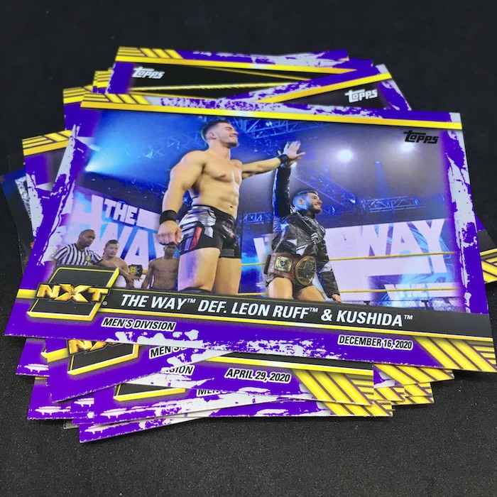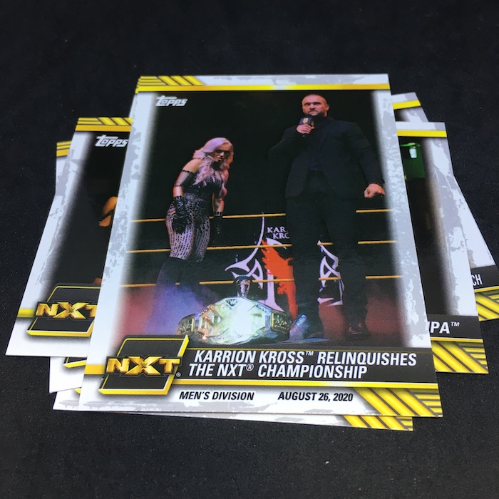 Notables on base cards: Karrion Kross, Scarlett, El Hijo Del Fantasma, Finn Balor, Damian Priest, Dexter Lumis, Keith Lee, The Way, Cameron Grimes, Riddle, Pete Dunne, Kushida, Jake Atlas, Imperium, Tommaso Ciampa, Adam Cole, Johnny Gargano, Bronson Reed and others