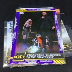 What's Buzz-worthy: These dipped a bit and I did pretty well with my first two so I ripped a couple more -- and this one delivered even better than the others in terms of a rare auto ... but it was dramatic. I went through 16 packs without an auto ... and then landed my first in my final pack. Was I shorted? No, I went back through my stack of Roster cards and that Gold was sitting at the bottom of the stack ... I missed it in my very first pack. Atop that? It was the rarest auto I have pulled this year ... of a guy I have already landed and, well, didn't really want to find. But that's how it goes. That card? One in 447 packs -- one in 25 boxes -- but the routine has been where a parallel auto of some color and a standard auto will typically pop up in a box each time. What I didn't find this time was a serial-numbered base parallel -- no biggie. Had that ink been a name I wanted? WrestleMania Main Event box ... and it would have paid for probably all of my boxes I've opened, too. This time? Probably not. For more thoughts on this one and more visuals (this gallery is abbreviated) check out my other breaks.