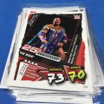 What's Buzz-worthy: I haven't previously ripped into a box of this format but this release is one that is a clean and interesting gaming set but with some issues ... at least with this Topps India version. (The cards are identical to the UK version but the materials and packaging here are sloppier with more condition issues in the end result ... only really an issue if you like to grade cards -- and I would like to grade some finds here.) ... If you don't know, Slam Attax cards are a vibrant and affordable rip if you're just looking for names to add to your collection, early cards of new stars or a flashy rip on the cheap. They're primarily made for the UK and European market (not sold in the U.S.) and then the Topps India crew re-issues the UK version of the set with everything but hits. This is one of a few packages made for that market that you can find out there without breaking the bank. It's not a perfect release -- a lot of stock and cutting issues here -- but the basics are nice. You just can't reasonably think of grading key finds here (not that many are ... but I would if they were clean). This one delivered right as it should have on the guarantees and it was generally fun to break just with flaws. The packs are clear so you can see the top and bottom cards and the foils are all on top and the wrappers can and do at times pull specs off of the foil surface even with careful opening. The bonus cards here -- inserts noted above -- are in their own packs. I liked this one -- it wasn't perfect but I may do more as it's cheaper to go this route than it is to import a UK display box thanks to shipping and conversion rates. I do like this one but the Chrome version -- one that has a lot better print quality, rare Refractors and autographs -- is even better. That one can be found here.