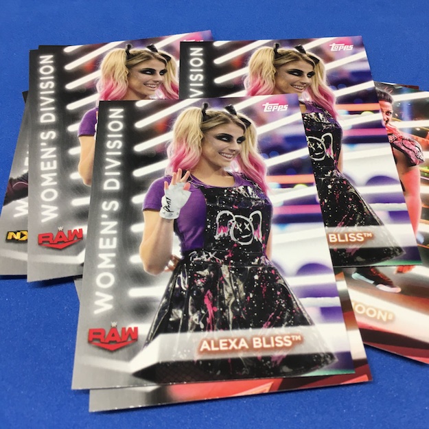 Notables on base cards: Alexa Bliss, Sasha Banks, Rhea Ripley, Charlotte Flair, Toni Storm, Carmella, Bayley, Asuka, Bianca Belair (and others)