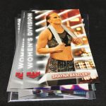 What's Buzz-worthy: My last couple of these have rarer manufactured Relics but they're not really something I'd want to find ripping into them but since it's a relatively quiet Thursday afternoon I figured I'd pop up one of them here. The Relic this time was Pride Fighter Sonya Deville who has been more in a talking role over the last year but has recently been in the ring more. The parallel this time continued these boxes over-delivering as parallels are not assured. The Roster insert collation funkiness continued here with a few dupes but not as bad as some past breaks here. (And I still like those cards more than anything that's not an autograph in this one.) ... For the suggested retail price and a reasonable shot at ink -- with all parallels seemingly in play -- this one is a pretty safe buy as long as you're not looking for the guys from WWE. I have busted a lot of these so poke around here to see more.