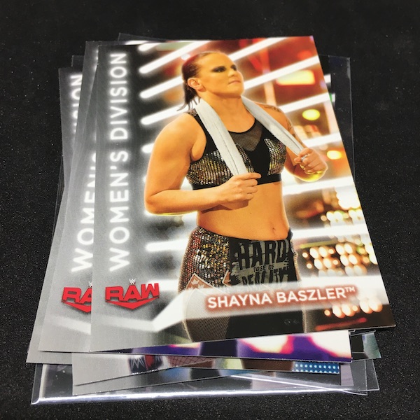 Notables on base cards: Sasha Banks, Rhea Ripley, Charlotte Flair, Io Shirai, Alexa Bliss, Nikki Cross, Shotzi Blackheart, Ember Moon, Dakota Kai, Toni Storm, Carmella, Bayley, Asuka, Bianca Belair
