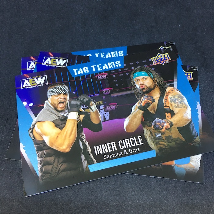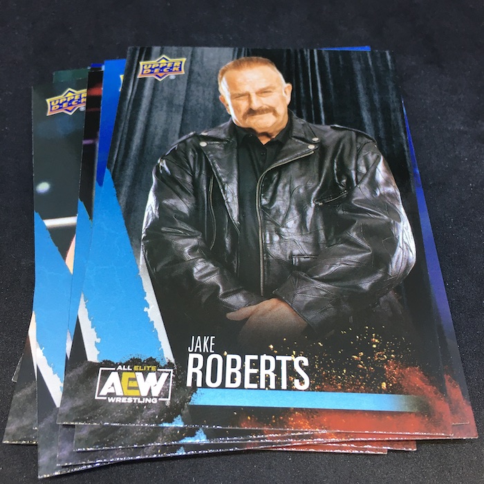 Base cards – Jon Moxley, Kenny Omega, Dr. Britt Baker D.M.D., Darby Allin, Tay Conti, Sammy Guevara, Joey Janela, Abadon, Pac, Nick Jackson, Matt Hardy, John Silver, Jake Hager, Jake Roberts, Mr. Brodie Lee, Evil Uno, The Blade, The Butcher, Alex Reynolds, Isiah Kassidy, Cash Wheeler, Stu Grayson, Paul Turner, Chuck Taylor, Trent?, Lucha Brothers, The Dark Order, Inner Circle, FTR, Colt Cabana, Matt Hardy, Darby Allin, Matt Jackson, Chris Jericho, Lance Archer, Cody Rhodes, Sammy Guevara