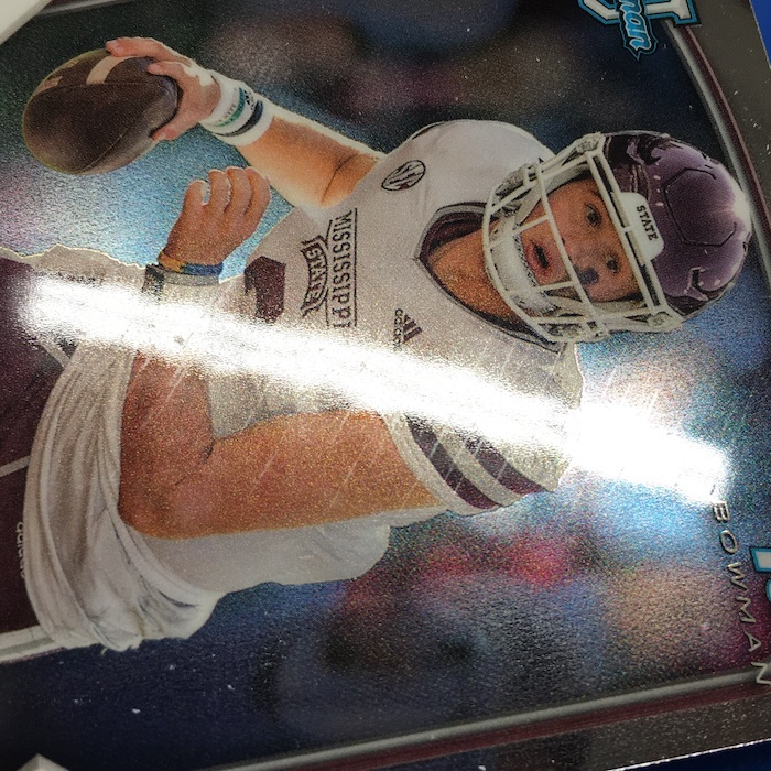 Product Grade: A- (landmark kind of release as it's Chrome for active NCAA players on NIL deals ... plus includes potential new draft picks ... this grade assumes damage is not widespread issue)