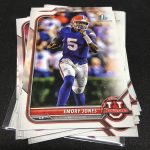 What's Buzz-worthy: I didn't land anything Bryce Young in this one -- unlike my first -- but it was a box that delivered pretty well in different ways with the Aqua Chrome that's one in 80 packs and then some other notables among the inserts and Pinks. What was interesting here is that after opening two blasters and a hobby box (look for that here next week) I want to say that beyond autographs I think the blasters give you a little more bang for the buck in terms of variety with the color and the mix for the low price. I didn't expect that ... but that's the power of some retail-exclusives for you (the Pinks) that stand out. ... As I noted last time, I was a little surprised to see this one go retail but I'm glad it did as the Chrome element to this NIL release -- there are active college football stars here not just guys who were just drafted -- makes this one perhaps a leader of the pack for the new NCAA kind of cardboard. Why again? The Chrome and Chrome autos part. Now these boxes are lean and there are some smaller issues -- especially if you grade a lot like I think I do -- but it's a start. The boxes are labeled as seven packs of four cards but that actually excludes the Chromes, which are not every pack here. And that's a bummer. Basic Chromes are one per box, while the Pinks are one in every other pack. The other bummer here? The packs are so small that edges and corners can easily show issues with curling or nicks -- probably because they are so small or from other mechanical or packaging issues. (It's something I have seen in a few releases this year.) And it turns out the hobby packs are also this small ... though I didn't notice as many issues there. (I'm sure they come and go in either format.) ... Ink in blasters starts at one in 75 so you're probably looking at three or four per blaster case. These are not CLC licensed so no formal team names or logos are in play here -- not even a simple state statement -- so that's a little bit of a challenge for the appeal, but that's licensing for you. Autos have a full array of parallels here, too, with Super autos one in 48,263 -- actually not the toughest find here. The variation Superfractor autos are one in 748,066 packs ... so the print run here isn't shabby. I'll rip more of this one so I'll perhaps say more then. As a collector, I like this one.