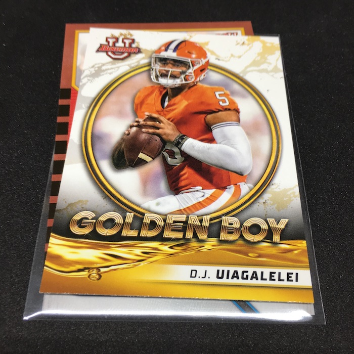 What's Buzz-worthy: I'm a casual believer in this one -- especially with fully licensed Topps college stuff in the future building upon this first release -- and I grabbed another since it's affordable and has some chase that I particularly like. Nothing pricey in most boxes and that's fine for the $19.99 price here for me but this one passed the Bryce Young test (he shows up and I don't hate the rip) and it also included a Green Lava parallel that's one in 159 packs (23 boxes) that I wish had been Young. The Tagovailoa card also was a nice find in my mind (school ties, too) though he's not a money guy. This one is just a quick, cheap break with long ball potential as, yes, autos and rare stuff is in here ... if you're lucky. It's a bit of a throwback to the days of only a few years ago when a collector could go hit the retail aisle and grab a handful of $19.99 boxes and see what happens. (Yes, SRPs still matter to me ... $27.50 and up makes a difference in my buying habits.) ... As I mentioned last time, I was a little surprised to see this one go retail but I'm glad it did as the Chrome element to this NIL release -- there are active college football stars here not just guys who were just drafted -- makes this one perhaps a leader of the pack for the new NCAA kind of cardboard. Why again? The Chrome and Chrome autos part. Now these boxes are lean and there are some smaller issues -- especially if you grade a lot like I think I do -- but it's a start. The boxes are labeled as seven packs of four cards but that actually excludes the Chromes, which are not every pack here. And that's a bummer. Basic Chromes are one per box, while the Pinks are one in every other pack. The other bummer here? The packs are so small that edges and corners can easily show issues with curling or nicks -- probably because they are so small or from other mechanical or packaging issues though that problem was not as pronounced with this box. (It's something I have seen in a few releases this year.) ... Ink in blasters starts at one in 75 so you're probably looking at three or four per blaster case. These are not CLC licensed so no formal team names or logos are in play here -- not even a simple state statement -- so that's a little bit of a challenge for the appeal, but that's licensing for you. Autos have a full array of parallels here, too, with Super autos one in 48,263 -- actually not the toughest find here. The variation Superfractor autos are one in 748,066 packs ... so the print run here isn't shabby. I'll rip more of this.