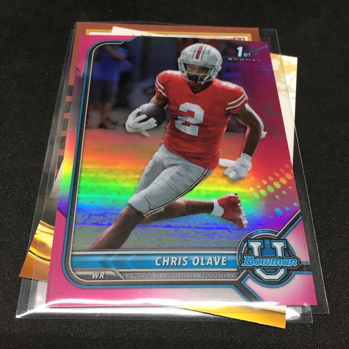 Pink Chrome Prospect (Refractor finish) parallels (4) – Chris Olave, Brandon Peters, Kennedy Brooks, Harrison Bailey