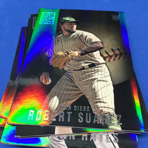 What's Buzz-worthy: This one was weird as almost all of my inserts were identical to my previous box -- an extra New Age last time turned into a Big Bang this time. The rest of the box was the typical dark-but-flashy mix but without an autograph this time and with a jersey card instead. That could have pushed it more toward average territory but I still landed a J-Rod insert that I like here and a couple veterans of note here and there to avoid a C ... barely. These boxes deliver decent volume and the guaranteed hit helps a lot vs. other retail brands ... plus I landed my pair of these for about half price of original so that takes some sting away. ... As I said before, they say don't let the cover fool you with books -- and I think that thought applies here with these Padres brown boxes ... that just isn't the right feel here. This one feels like something from the deluxe Fleer years with some touches of Pacific Trading Cards with some nods to stuff like Black, Crusade and Elite all rolled into one. If the basic look here works for you it should all work for you as a cheaper break with some potential. ... My player selection once again wasn't that great among the basics -- the 100 base cards and the 100 Luxury Suite cards atop that seem like there's a deep checklist here based on these names. The RC presence can be erratic, though, as my previous blaster had twice as many RCs as this time.