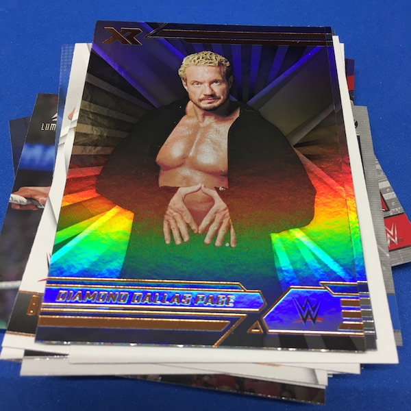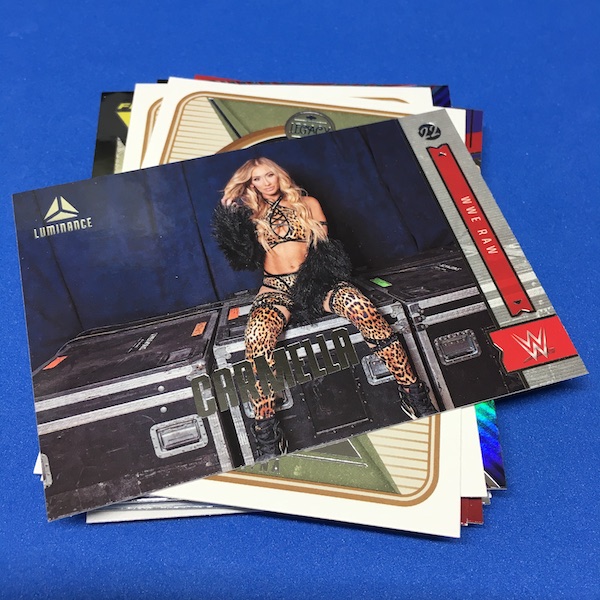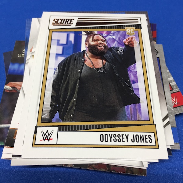 What's Buzz-worthy: My last box of this one was flat-out bad due to a production problem that saw more than a dozen cards with indents all over the card backs -- a very unusual find -- and this box still had a few cards that way as well (unfortunately on some key newcomers' cards) but the issue was not as bad here. ... The errant gloss that plagued the NXT release is back here (only a big deal there if you grade but definitely annoying) but the rest was pretty clean, allowing for a better impression and some good variety, which is what this brand is known for in any sport just as it is here for its WWE debut. ... The array of possible finds in this release should make it an easy A+ in my book -- it's a catch-all loaded with stars and a number of NXT newcomers who had zero cards before this release or are RCs in anything from 2022 -- but I'm quite glad I didn't order a case of either format here after seeing that issue and having a bad group break due to collation. (I pondered cases of both.) The autos can be hit and miss with some older names and a lot of new names in play -- but also some huge names possible as well. Hobby boxes have a lot more going on, including two autos per box every time and then a number of chases that are in the case level. This one? It doesn't feel as lean as Prizm but if you strip away the variety of the subsets/brands within the release then it's somewhat limited with just Bronze and Green parallels across the board and then seven sets of Red parallel autos. How easily does ink flow? I'm not sure but I went hitless in three boxes. I'll offer more thoughts on this one in coming breaks and during my WWE breaks marathon, BuzzMania 6, on March 31. Be there.
