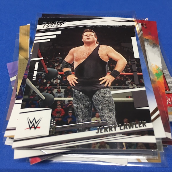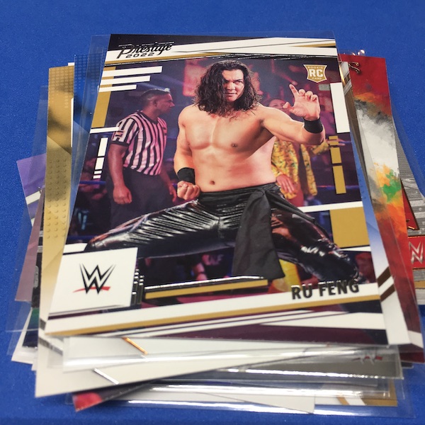 What's Buzz-worthy: This one was yet some more déjà vu with 13 of the 15 base cards here identical to my previous blaster and then a number of cards here had dents on the card backs, though not as bad as my first box of this one that was flat-out bad on that front. ... The errant gloss that plagued the NXT release is back here (only a big deal there if you grade but definitely annoying) but the rest was pretty clean, allowing for a better impression and some good variety, which is what this brand is known for in any sport just as it is here for its WWE debut. ... The array of possible finds in this release should make it an easy A+ in my book -- it's a catch-all loaded with stars and a number of NXT newcomers who had zero cards before this release or are RCs in anything from 2022 -- but I'm still quite glad I didn't order a case of either format here after seeing that issue and having a bad group break due to collation. (I pondered cases of both.) Hobby boxes have a lot more going on, including two autos per box every time and then a number of chases that are in the case level. This one? It doesn't feel as lean as Prizm but if you strip away the variety of the subsets/brands within the release then it's somewhat limited with just Bronze and Green parallels across the board and then seven sets of Red parallel autos. How easily does ink flow? I'm not sure but I went hitless in three boxes. I'll offer more thoughts on this one in coming breaks and during my WWE breaks marathon, BuzzMania 6, on March 31. Be there.