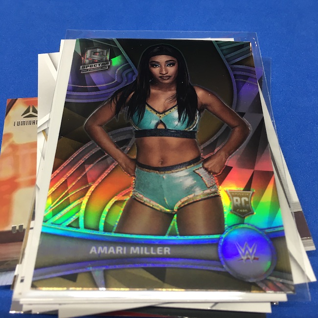 If you don't know, on some of my past breaks there was a lot of repetition -- boxes where nearly all base cards were identical then a number of cards here had dents on the card backs. My first box of this one that was flat-out bad on that front -- something I've not perhaps ever seen -- while the errant gloss that plagued the NXT release was still here to a degree. (Only a big deal there if you grade but definitely annoying.) ... Numbered cards here seem like they are going to be rarer finds along with the hits -- I have none as I'm closing in on 10 boxes -- but the array of possible finds in this release should make it an easy A+ in my book if all was clean -- it's a catch-all loaded with stars and a number of NXT newcomers who had zero cards before this release or are RCs in anything from 2022. ... Hobby boxes have a lot more going on, including two autos per box every time and then a number of chases that are in the case level. This one? It doesn't feel as lean as Prizm but if you strip away the variety of the subsets/brands within the release then it's somewhat limited with just Bronze and Green parallels across the board and then seven sets of Red parallel autos. I'll rip more of this one in my WWE breaks marathon, BuzzMania 6, on March 31. Be there.