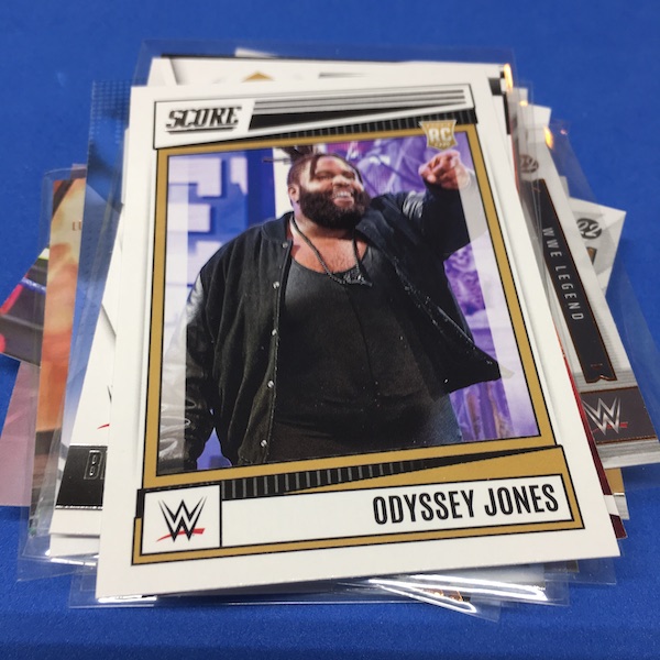 What's Buzz-worthy: This one was a box that was, for the most part,without the substantial back-side surface dents that were all over other boxes -- don't get me wrong there were still a few -- but that not being a widespread issue let me enjoy the variety here a little bit. and some good names I haven't seen, too. If you don't know, on some of my past breaks there was a lot of repetition -- boxes where nearly all base cards were identical then a number of cards here had dents on the card backs. My first box of this one that was flat-out bad on that front -- something I've not perhaps ever seen -- while the errant gloss that plagued the NXT release was still here. (Only a big deal there if you grade but definitely annoying.) ... Numbered cards here seem like they are going to be rarer finds along with the hits -- I have none as I'm closing in on 10 boxes -- but the array of possible finds in this release should make it an easy A+ in my book if all was clean -- it's a catch-all loaded with stars and a number of NXT newcomers who had zero cards before this release or are RCs in anything from 2022. ... Hobby boxes have a lot more going on, including two autos per box every time and then a number of chases that are in the case level. This one? It doesn't feel as lean as Prizm but if you strip away the variety of the subsets/brands within the release then it's somewhat limited with just Bronze and Green parallels across the board and then seven sets of Red parallel autos. I'll rip more of this one in my WWE breaks marathon, BuzzMania 6, on March 31. Be there.