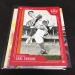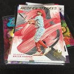What's Buzz-worthy: Diamond Kings costs a little more at the retail aisle this year ($27.50 plus tax at Walmart, for example) and the box doesn't guarantee a hit (though they might) so that immediately makes the two-hit hobby boxes at the link above (one auto, one mem) a safer and good buy at present prices if you like the look and lineup of what's here. This one isn't quite as clean visually as two years ago or maybe even last year for the base cards but they do offer up a somewhat firmer frame for images that some may have wanted from the base design. (I like the others better.) That slips this one's grade down a tick for me, though I still think the heavy mix of past legends here helps and with the lower price this one is a fun rip for a collector. A flipper? They might try something else. The rookies here are in three tiers and there are some SPs (not unusual here) as well that look like base cards. The insert lineup also is a familiar one ... about my only criticism here might be the stock and some of the color choices. The corners on the standard rookies are dark and they showcase their corner flaws well. (I think the "canvas" texture happens after a roller is applied to the surface and then it frays easier when the cards are cut.) My highlight card here is perhaps the Mantle, though there are others that aren't bad finds here and then the hit is a decent find as I'm not 100-percent sure they are guaranteed. (This is my first and perhaps last blaster of this one with its retail SRP ... I will probably do a hobby box if/when I do more.)