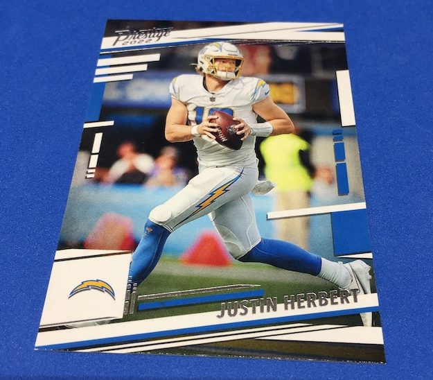 Notables on base cards: Justin Herbert, Brett Favre, Derek Carr, Lamar Jackson, Ezekiel Elliott, George Kittle, Chase Young, Aaron Donald