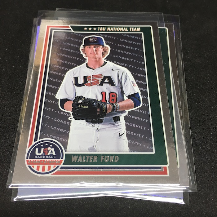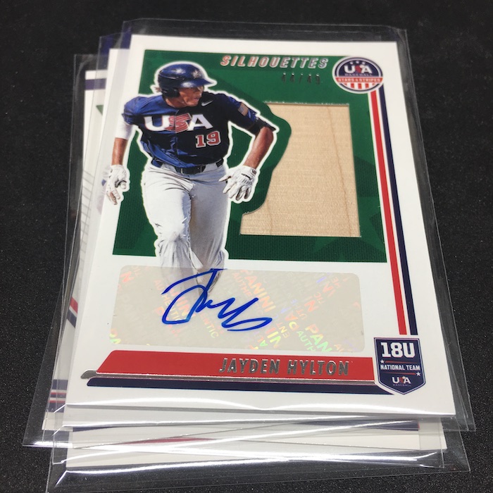 What's Buzz-worthy: First a disclaimer ... this one is a 2022 release per the box and the copyrights on the cards but when it was first revealed it was noted as a 2021 release -- not a big deal but that should clear up any confusion ... along with the fact that the 2020 USA Baseball events were canceled due to COVID. ... With the MLB Draft earlier this month, I was reminded of the potential with USA Baseball sets every year -- and I say it that way as sets include players from the 15U, 18U, Collegiate National Team and sometimes players even younger than those mentioned here. That means you can have players on cards years before draft time if they pan out. This year's first round included 20 former players and this was the 19th time in the last 22 drafts where the No. 1 pick played for one of its teams. ... I used to be a heavy buyer of USA stuff when they were full sets with bonus hits and still dabble regularly with these pack/box formats -- largely for the price vs. volume of hits with potential (either player or card type) -- but this one is arguably too simplified. Some parallels look identical to others save for a foil color only seen on the name and a minor stripe. My Silhouette cards? They look pretty much identical save for the type of swatch inside -- a big difference in volumes made, though. There are a ton of good names to find in this one and the long-term potential also is there. This box included a few first-rounders across all card types. This one just isn't as flashy as past releases, though its design might be crisper, and I'd argue this particular box might be among the driest USA hobby boxes I have opened ... but they won't all be that way with patch cards, jumbo memorabilia cards, laundry tags and plenty more. Even some Whammy! cards, too. Blaster boxes will typically give you an auto and a mem card here but with the retail SRPs a little higher than past years, hobby boxes are the way to go for the cost until they dry up.