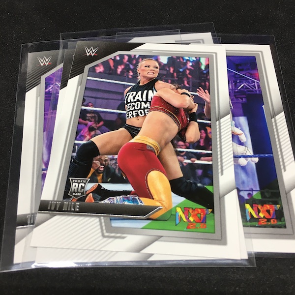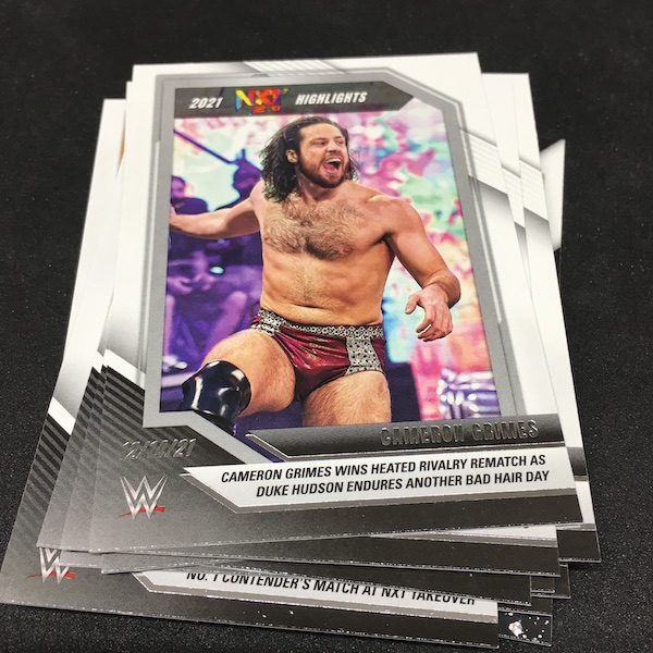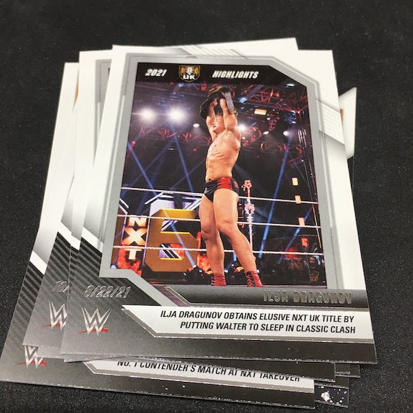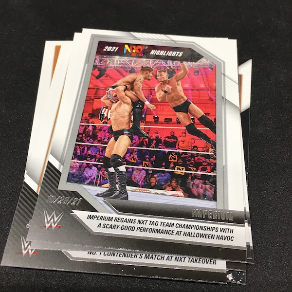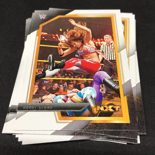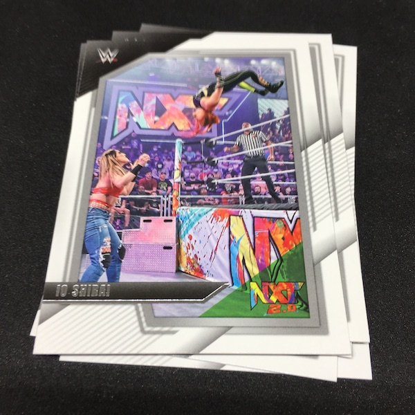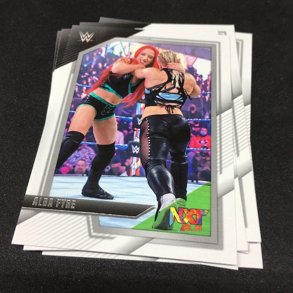 What's Buzz-worthy: My second one of these delivered well in that my autograph is a rare pull of a future Hall of Famer with international appeal -- so that's a win finding her vs. some younger star who might not even still be on the roster. (It happens ... but NXT is where it might happen faster than other releases.) The ink alone makes this one an A+ box, though I like a lot of what's in this base set -- about the only drawback is how parallels aren't found all that heavily. ... What is in this one? A meaty dose of Rookie Cards -- 60 on the checklist (61 if you include UK star Johnny Saint on his first WWE cards) -- and a photography showcase with on-card autos and plenty of parallels for a budget price. This one is loaded with past and present talent for WWE's developmental program and this one is loaded with stars who haven't had cards before -- or had no cards at all before Panini America took over the license this year -- and that's partly due to the influx of new names for NXT 2.0 (now back to just NXT), NXT UK and getting caught up on production cycles post-COVID. (Topps' NXT releases had a lot of delays so checklists didn't have as many new names.) All in all, I liked this one more than I had expected so I will rip more over time. This one has a lot to chew on and it's really Panini's first traditional-stock release of the year ... perhaps it could set the stage for some traditional, affordable releases for collectors not into solely chrome stuff to rip?