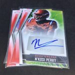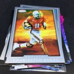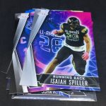 What's Buzz-worthy: You may have noticed the name change here -- "draft" isn't in there any more as this one includes possible draft picks as well as current NCAA guys on autograph/insert cards who will still be in the ranks this coming season. It's a move that's thanks to the new NIL rules allowing current athletes to do autograph deals. This one includes a lot of ink -- and you get three per blaster here at the standard $19.99 price -- so there's potential here if you're a prospector on the gridiron. I'm more of a one-team guy and I only got one guy from my team in this one, but I noticed a lot more volume with inserts here atop the parallels, which is an improvement over last year. The design also seems a little better for them in the approach (I might like 2020 better but this feels stronger than 2021) but I gave it the same grade as last year, though, since I think the basic player crop may not be as strong. The NIL guys help give this a little more potential than perhaps normal for the brand. All in all, this one should have a decent amount of stuff for the football-first fans to chase who like the hunt and small-school dark horses, too. With the NIL guys that could be a big key if somebody breaks out in the college ranks between now and next year.