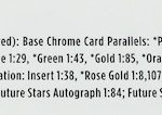 What's Buzz-worthy: Should Logofractors be the new Superfractor? I say yes ... and let that golden hue continue there and then give us a full rainbow of these Logofractors in every release, too. That's how much I think this one works -- so much so the basic standard Chrome packs here don't even register with me (or the missing SP rookies and that fix) -- and despite that this edition bumps things up to an A release ... for this format. That said, it's not perfect -- I openly wondered why this one didn't have closer to a retail mega box price point vs. the $49.99 it was on Topps.com and then at the MLB Flagship Store in New York City -- the only places it was sold initially before the secondary market takes over. My box here wasn't the biggest deal, either, with my biggest highlights probably being Aaron Judge appearances, but the new stuff here is a win -- Logofractors are a win and I think something like Teamfractors or Leaguefractors should be pondered over some of the random textures we've seen though the years. The Logofractor packs here are the key and the routine does look to include color every time and an insert, too, from what I have seen. The inclusions -- see odds -- are not limited to these, either, though with only two packs per box that's a lot of boxes to land stuff ... another reason I pondered that start price. Players on image variation Logofractors are one in 38 packs (19 boxes), while ink starts at one in 20 (10 boxes). I think the possibilities here are good -- and I certainly like the approach and price here vs. it being a premium-priced Logofractor-only big brick of cards launched mostly for 582 Montgomery Club members only scenario. That more-democratic approach means I think you should at least try this one out. The odds won't be easy, but when you land a big -- and there are some Superfractors here -- you'll know it. The prices on the Julio Rodriguez Logofractors here are illogical to a degree but as impressive as the design and look. (So, in some ways, they make sense, too.) Here's hoping that Logofractors have a place in the hobby for some time. Now, excuse me while I go track down some and set up some eBay searches on one of my players ...