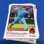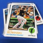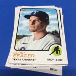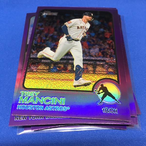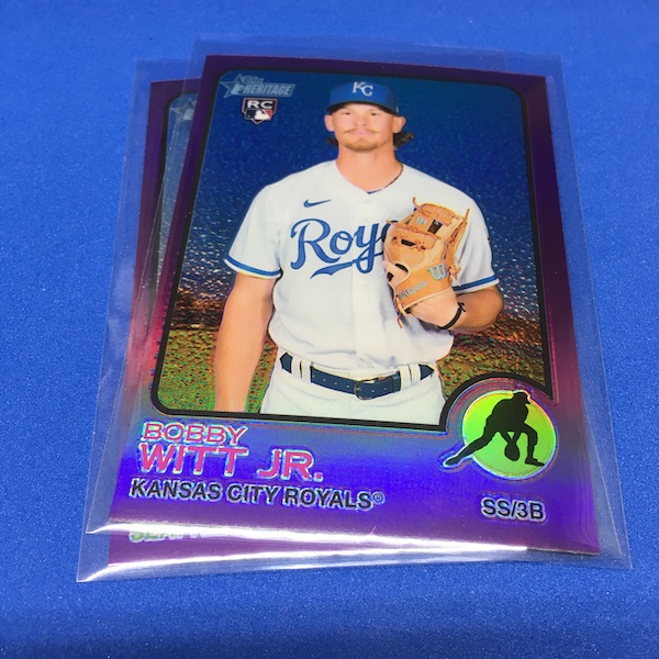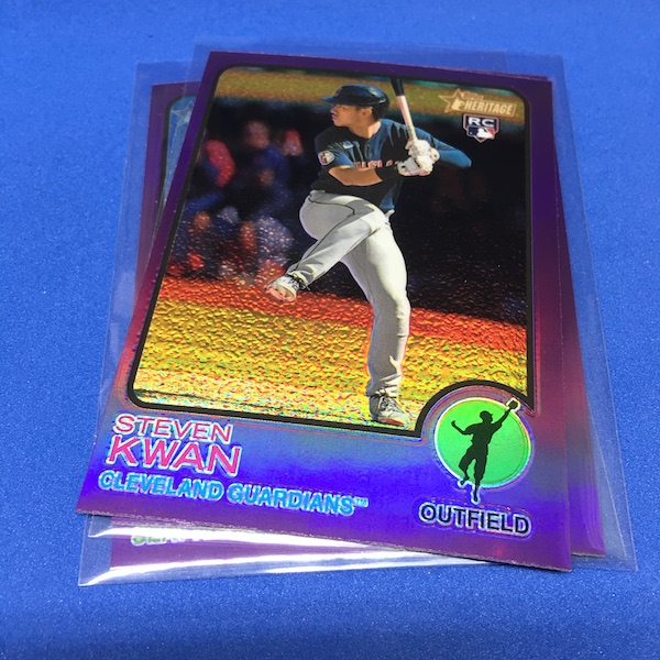 What's Buzz-worthy: My first box of this one ran hot -- a Hot Box found one or two times per case -- with a Purple Refractor in every pack. The centering on those was bad but it included Julio Rodriguez, Bobby Witt Jr. and Steven Kwan to make it a solid one. The set size is small so you should land most of the set in every box here -- a good thing -- but that does mean that they guys will be plentiful, too, so it might not help values. (I'm good with this approach ... makes people happy.) The set is cleaner cut than the first series -- those back cuts aren't nearly as rough as last time -- and that makes this one a winner for those who will grade. Some still had issues just not as often as last time. The inserts here had some good variety and some decent names but the semi-industrial simple design of 1973 kind of is seen there ... not always in the best way. The All-Star Game insert design is very good vs. everything else, though, so there are some highlights here I want to analyze on the checklist and ponder my next moves here. Will I rip retail? I do have one more hobby box to pop up here soon, so I haven't landed on an answer with that just yet. I also need to examine the breaks of mega boxes, too, though I think hobby is a better way to go vs. that right now for the cost. The ink didn't flow for me at all this time but I did land an Action variation which is one in 66 packs, though I think these boxes will offer up some type of variation every time. All in all, a good start here and if I liked the 1973 design more this one might have landed an A+ grade overall. As a collector, this is the kind of box we need to see more of -- a lot to chase -- but without a price that forces one to rip and flip since it's so expensive.