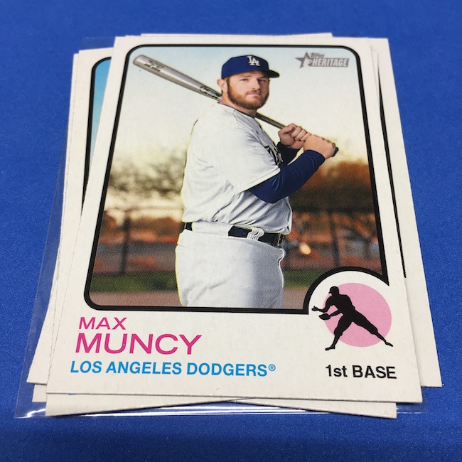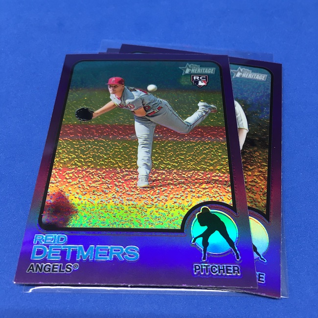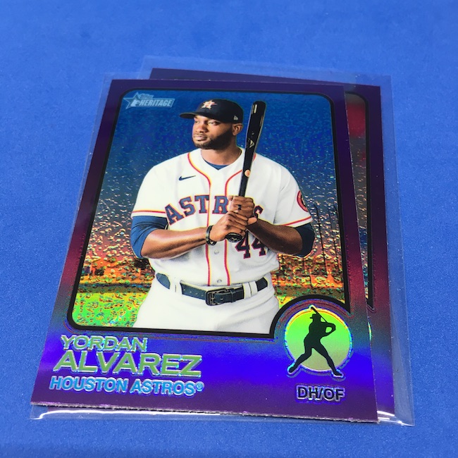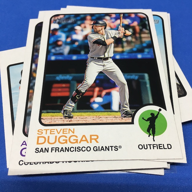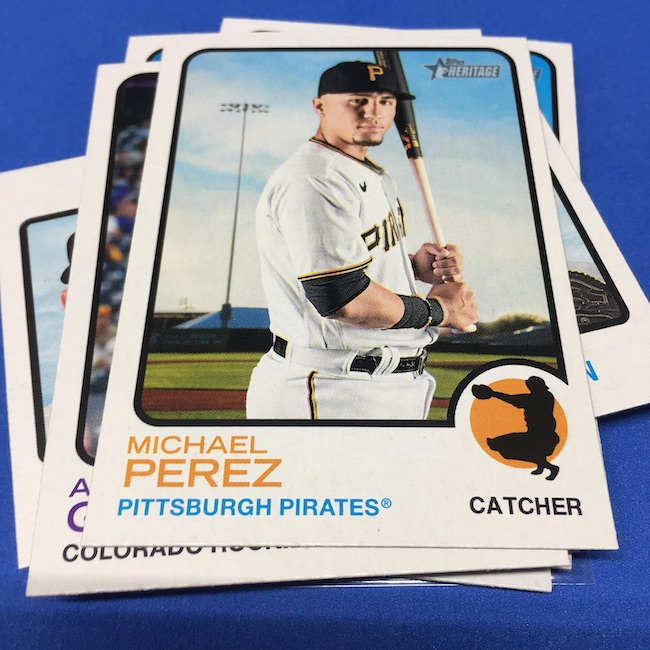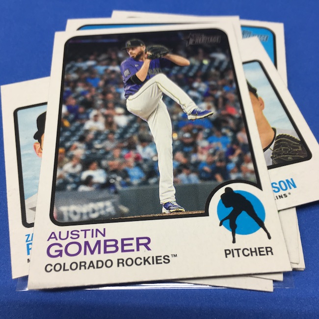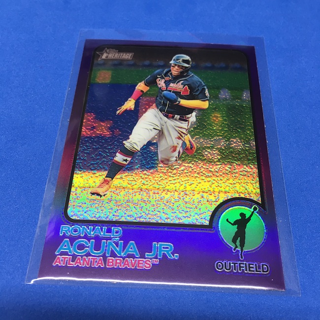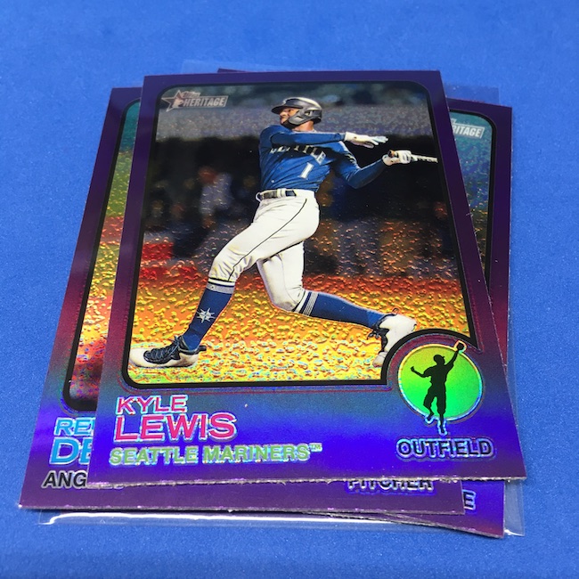 What's Buzz-worthy: I dabbled once again in the retail wild and got my hands on a one-per-case Hot Box. What was hot here? Not much other than a handful of good names among the Purple Refractors that are one per pack here, making the box hot. Not much else here but that's fine as these boxes are now cheaper than at release and worth the rip as long as you can deal with the long-odds realities here. There is good stuff to be found in Heritage but it's not easy ... and good stuff is in retail, too. ... As I noted before, truth be told, I wasn't very sold on 1973 cards in most of the years leading up to this edition of Heritage but I did relatively well without pulling any monster autos. ... The printing seems a little retro as there are cards with some brighter white on fronts than others and the backs are admittedly chippy and have dark spots here and there as black and yellow aren't the most-friendly colors on oldschool stock. All in all, this one surprised me -- it's not as dry as a couple years ago but it's also not as colorful and star-stuffed as the previous year's ... but some touches are growing on me. ... There's a lot to like and chase here (see checklist with all of the variations noted above) but you'll need some luck to find many of them. They could be in there.