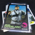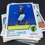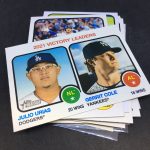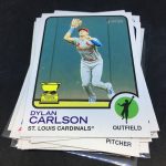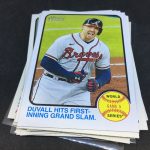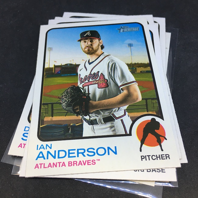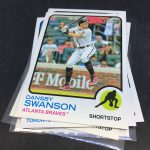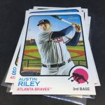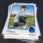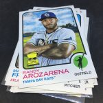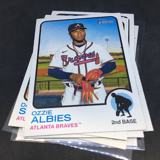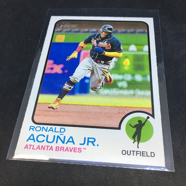 Notables on base cards – Ronald Acuña Jr., Fernando Tatis Jr., Mike Trout, Jonathan India, Vladimir Guerrero Jr., Dansby Swanson, Ozzie Albies, Austin Riley, Ian Anderson, Max Fried, Randy Arozarena, Dylan Carlson, Bryce Harper, Mookie Betts, Adam Duvall, Cody Bellinger, Julio Urias, Gerrit Cole, Albert Pujols, Miguel Cabrera, Nelson Cruz