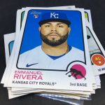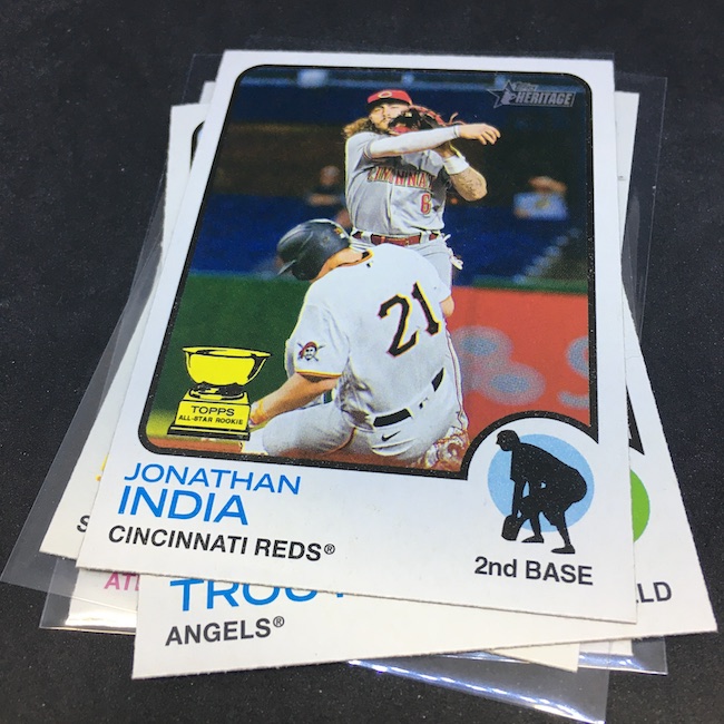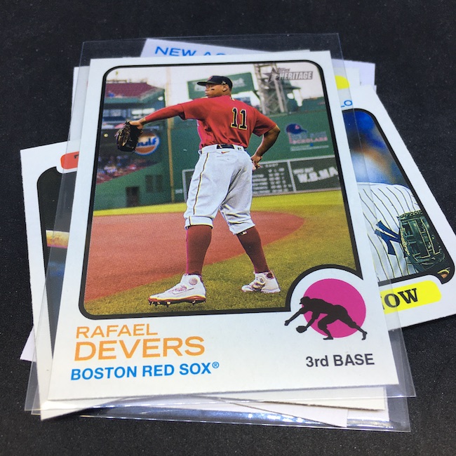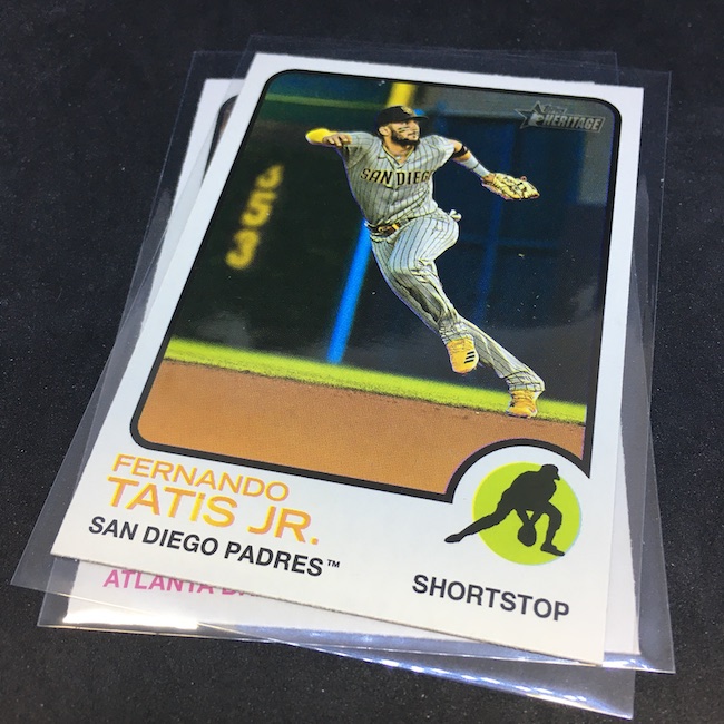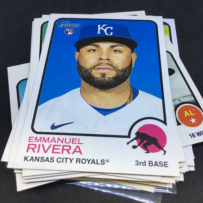 What's Buzz-worthy: My first hobby box of this one was a three-Franco Hot Box monster so it left a good impression about this trip back to 1973. This one? About the same with a Relic as the hit but more back-to-reality ... with only one Franco insert (which I didn't land last time). I got a variation this time and a Black parallel, too, but nothing on the Chrome front ... still enough to barely get this one an A. It's not flashy but I didn't hate it at all. If I was a half-case in on these for this year it probably wouldn't grade as well ... but it still felt solid, though my hit was nothing to write home about. The Black parallel is one in 96 packs. ... The RC volume here is pretty solid with some good names while the inserts in this box were strong with a few names but not all big names. The printing seems a little retro as there are cards with some brighter white on fronts than others and the backs are admittedly chippy and have dark spots here and there as black and yellow aren't the most-friendly colors on oldschool stock. ... There's a lot to like and chase here (see checklist with all of the variations noted above) but you'll need some luck to find many of them. Flippers probably won't be in on this one that hard ... so I think it might be worth the look if it lingers. Heritage is always a brand that can deliver even if it's not all that flashy.