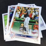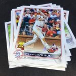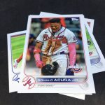 Notables on base cards – Shohei Ohtani, Vladimir Guerrero Jr., Bo Bichette, Ronald Acuña Jr., Ozzie Albies, Juan Soto, Mike Trout, Bryce Harper, Albert Pujols. Fernando Tatis Jr., Jonathan India, Dylan Carlson, Austin Riley, Joey Bart, Andrew Vaughn, Bobby Dalbec, Triston McKenzie, Jarred Kelenic