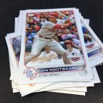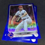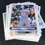 What's Buzz-worthy: At a glance this one may look like the norm, but a look at the odds on the wrapper makes this one an A+ box. Why? That Dugout Peeks card is one in 3,395 packs -- one in 95 boxes -- which is a pretty crazy find and then it's a Shohei Ohtani card atop that. It's a card that easily pays for the box and likely a few more. The only one I saw on an eBay search had an opening price of $300. It's rarer than many of the hits in this one and among the rarer finds in general from a brand that keeps it simple for its simple price but includes some annual staples such as mascot cards for all of the teams that have one. New this year are the perforated Triple Play cards that pair teammates, while some players' cards in the base set won't be found until Series 2. I didn't find a Wander Franco here but that doesn't matter with the big card here ... it's an A+ box. I'll drop some more thoughts when I rip into some retail of this one (ultimately same stuff just smaller boxes) -- my boxes there are still on the way.