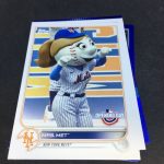 Mascots (12) – Blooper Mrs. Met, Mr. Met, Rosie Red, Swinging Friar, Rangers Captain, TC Bear, Blue Jays mascot, Mariner Moose, Sluggerrr, Paws, Wally The Green Monster