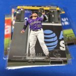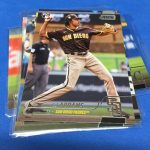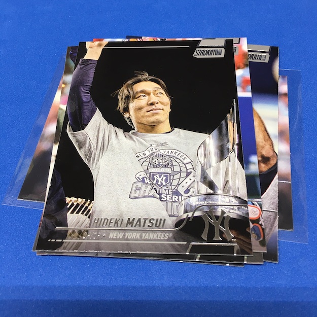 Notables on base cards – Rickey Henderson, Jackie Robinson, Mariano Rivera, Ryne Sandberg, Craig Biggio, Mike Piazza, Hideki Matsui, Mark McGwire, Kerry Wood, Dwight Gooden, Eric Davis, Austin Riley