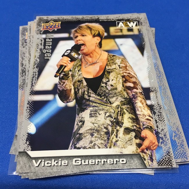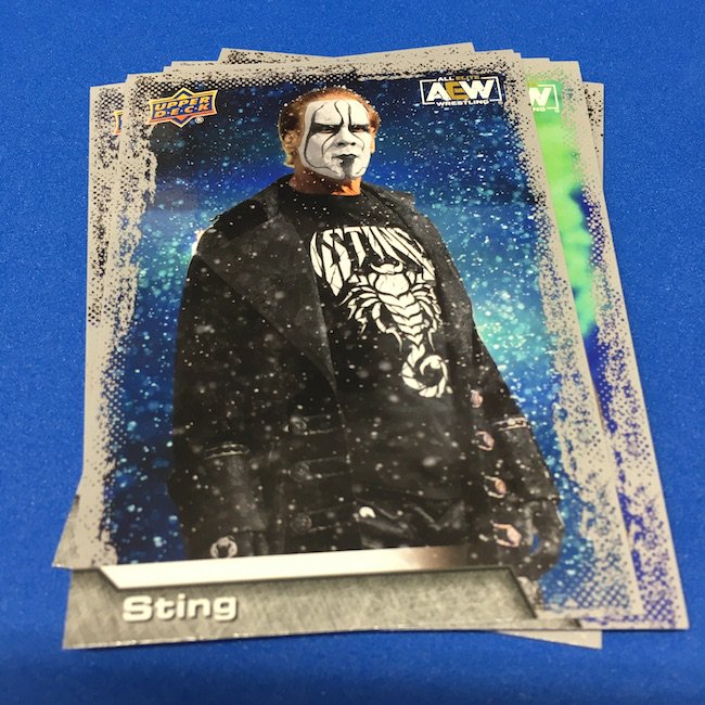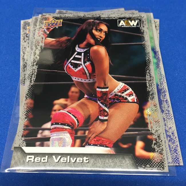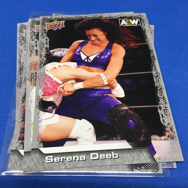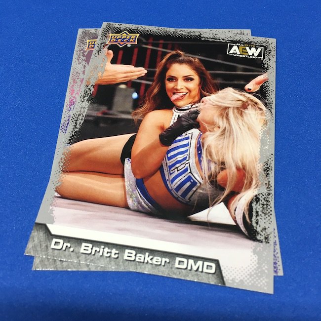 Base cards – Notables on base cards include Darby Allin, Britt Baker, Jon Moxley, Anna Jay, Penta el Zero M, Kris Statlander, Sting, Red Velvet, Matt Hardy, Serena Deeb, Jungle Boy, Orange Cassidy, Eddie Kingston, Adam Page, C.M. Punk, Vickie Guerrero, Max Caster, Tony Schiavone, Luchasaurus, Jay Lethal, Lucha Bros.