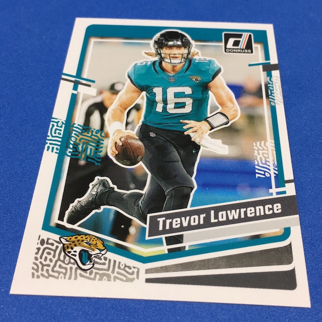 Notables on base cards – Trevor Lawrence, Travis Kelce, Chris Jones, T.J. Watt, Chris Olave, Justin Jefferson, Brian Robinson Jr., Mac Jones, Josh Jacobs, Trevon Diggs