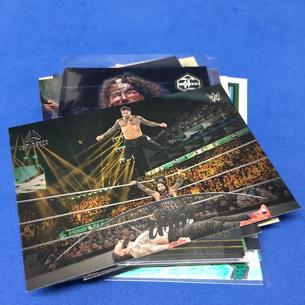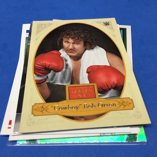 What's Buzz-worthy: Lemme tell you something, brother ... that box was solid even before delivering Hogan as the third numbered card and rarest of the bunch. That put this one over the top as an A+ box -- though it could be topped by an auto box ... but not all auto boxes might not top the Hogan as it pays for a decent chunk of the box if not all of it. (It's not a massive card ... it's just solid.) Tack on two more numbered cards and some good names and this was a solid one. ... As I said last time, this brand is perhaps the best collector's release of 'em all for Panini WWE in the last two years. Is it going to be a big-time money-maker for the rip-and-flip crowd? No, but there's good potential with the hobby boxes to come thanks to hobby-only rarities and ink every time. Blasters are the home to ink here and there and plenty of parallels, too, with some numbered. (And some parallels not noted on box panels ... like gold. I have a feeling there will be some bummed Action Packed Gold buyers from eBay over time.) ... The photo editing is tight -- there are some strong, strong visuals here -- and, well, it's a winner. Poke around for my other breaks for other thoughts for this one or even last year ... you'll see more of these to come, too.