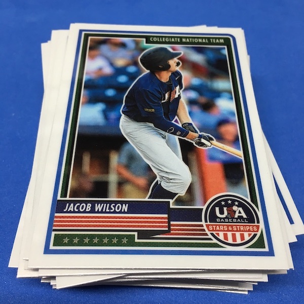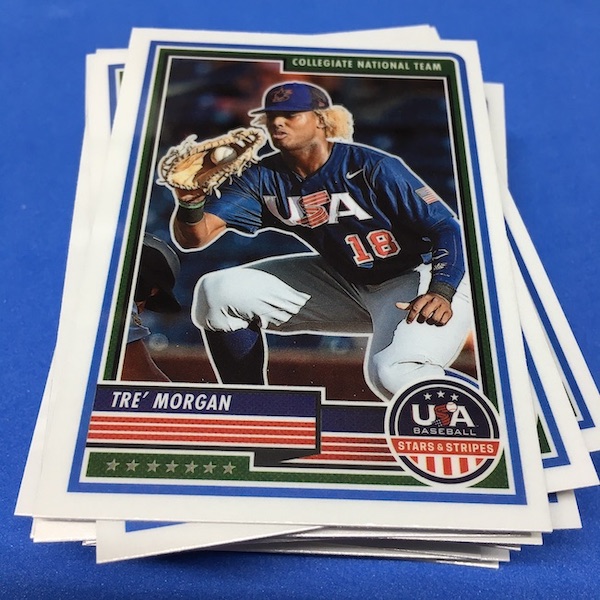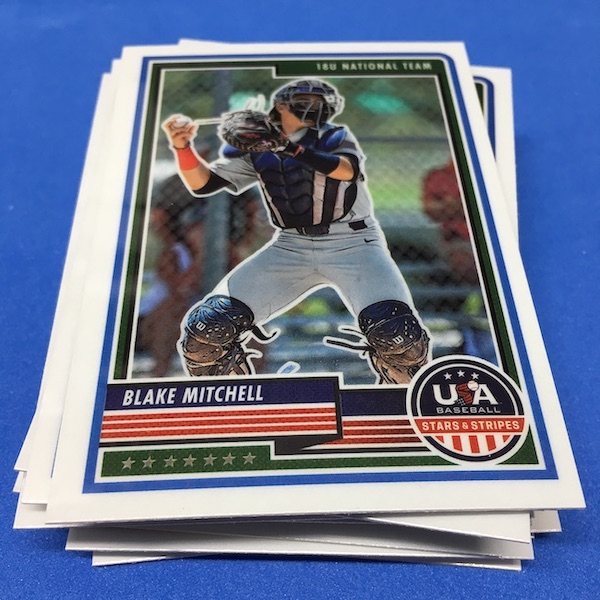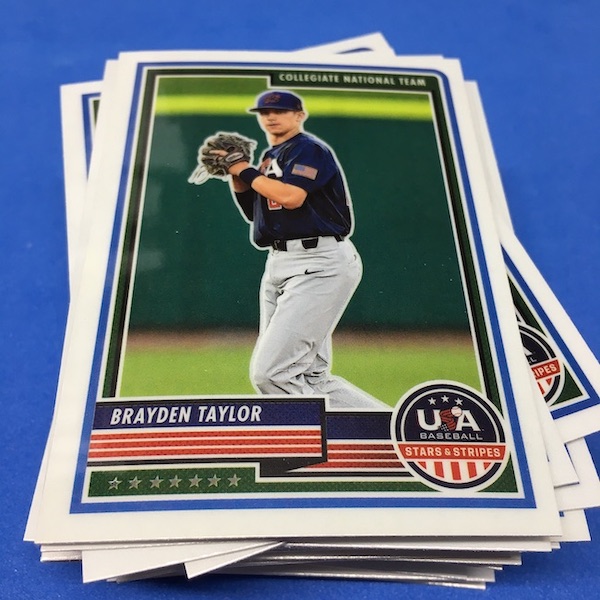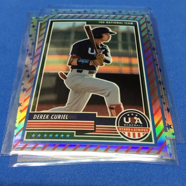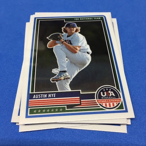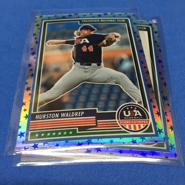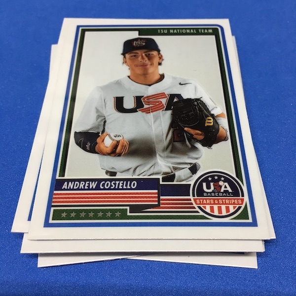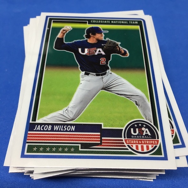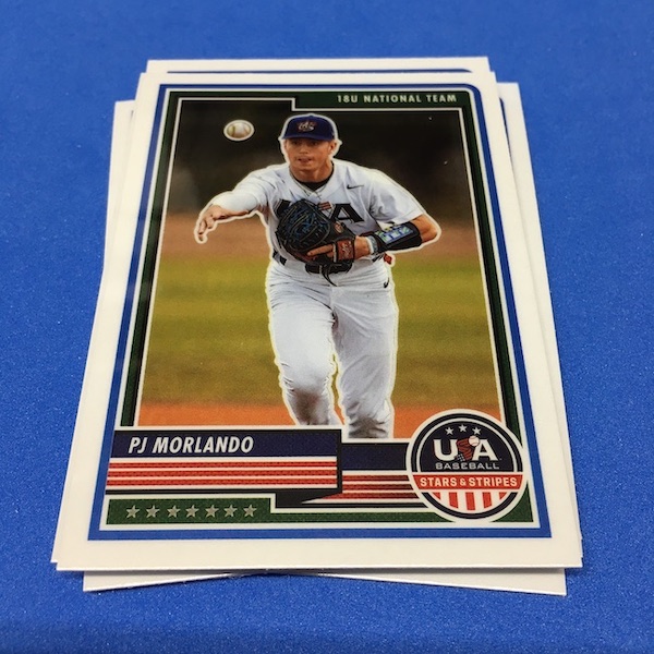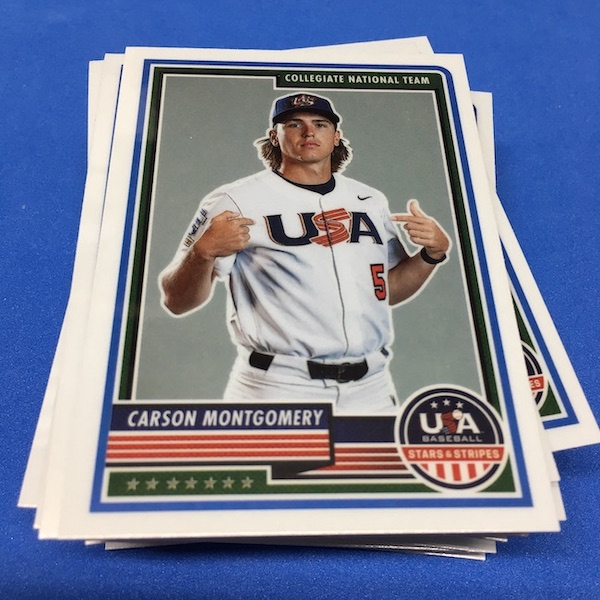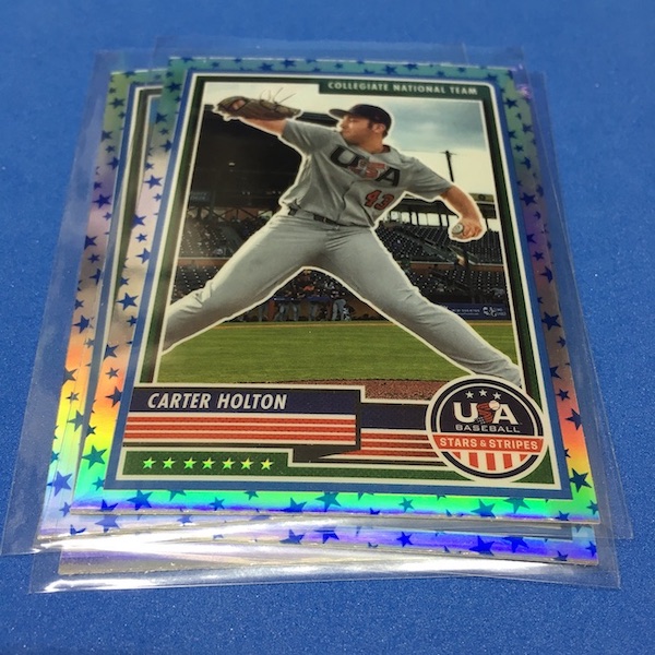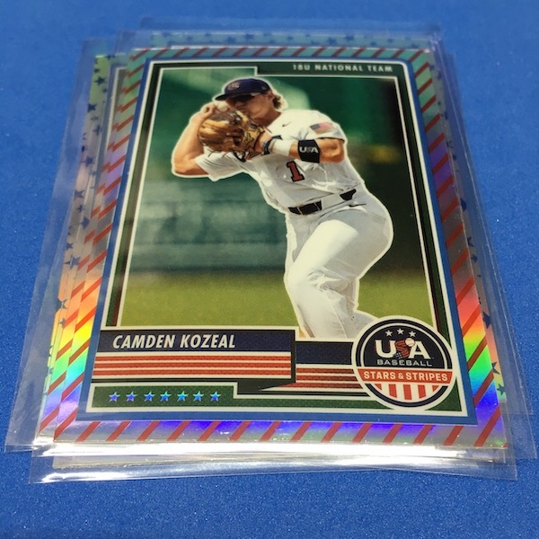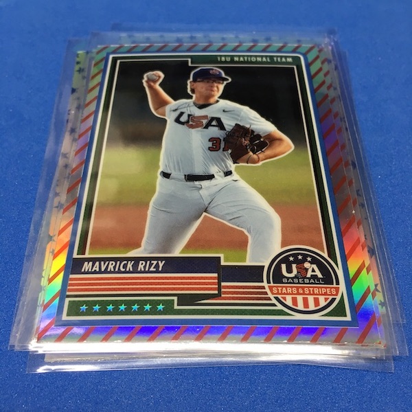 What's Buzz-worthy: My second one of these was pretty much identical in what it delivered as my first -- only this time it might have gotten even younger with Development Program players for three of my four hits. One of them? Born in 2008. ... We'll see how this box pans out in a few years, though a number of names here are among the MLB Draft prospect rankings right here right now for 2023. ... As I noted last time, this one is an interesting format as it's one of two at retail and it's one that delivers half of an all now-Optichome base set for USA for the first time -- and also packs four hits with the full array of possibilities. Hobby boxes (link up top) give you nearly double the the hits every time but are smaller boxes at a higher price to go with the additional hits. Blasters are small, of course, but still pack two ... and between the three is this sweet spot box if you're one who wants to load up on base (again, on Optichrome) with some flashy but simple parallels (Silver, Stars, Stripes). There are also other possible finds -- lots of possible finds. My box included three autos among the four hits again but nothing all that advanced on any front ... but for the price and volume this was still good ... good enough I will probably do more at some point.