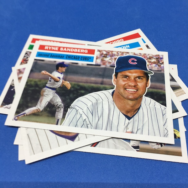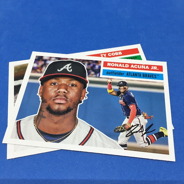 Notables on base cards – Ty Cobb, Ronald Acuña Jr., Ichiro Suzuki, Chipper Jones, Tony Gwynn, Ryne Sandberg, Tris Speaker, Mariano Rivera, David Ortiz, Mel Ott, Albert Pujols, Dylan Carlson, Sammy Sosa, Mookie Betts, Ozzie Smith, Eddie Mathews, Ted Williams, Willie Mays