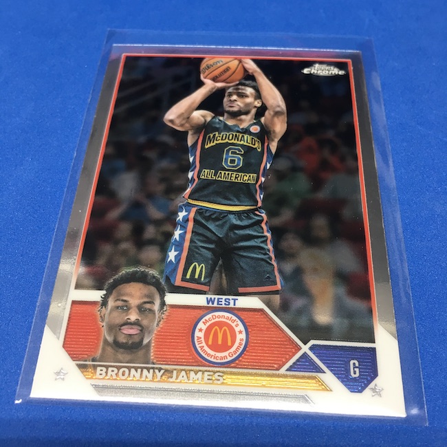 What's Buzz-worthy: Another blaster, two more Bronny James cards, one numbered card but two fewer insert cards than last time. For the price, still not rough ... though without the Bronny cards things, for now, might be rougher sledding at times, despite there being plenty of longer-term potential. ... As I noted before, this one is the arrival of Bronny James (aka LeBron James Jr.) on official cardboard but being that is a bunch of the top prep all-stars in the country for both boys and girls -- players who should be spotted on Bowman U cards in the future and then potentially on some NBA/WNBA cardboard later, too. It all starts here. ... I like this event and brand as I think it's a stronger one-time deal for a one-time event vs. college cards where there might be plenty before a player arrives as a pro, plus this event has been around forever with a ton of talent in there ... just not as much cardboard as there really should be. There are a number of possible finds here for players with action and portraits on the base checklist with each having a slight difference (see above right) that really should have been part of the variation mix with this year's flagship MLB design ... but that didn't happen. There's really good potential here for a collector or for somebody who likes to dabble with early cardboard.
