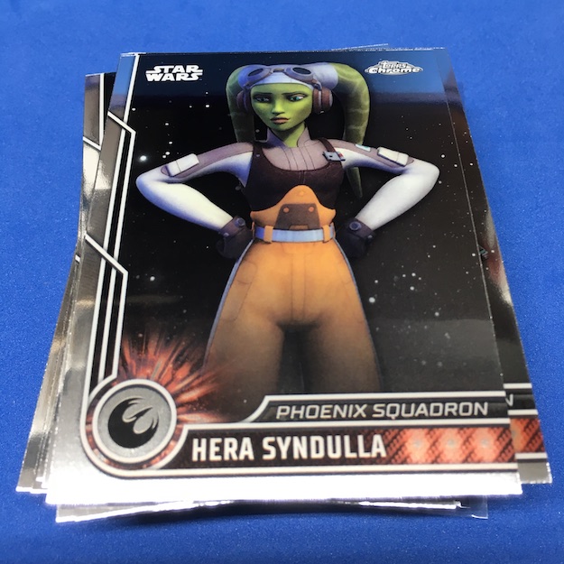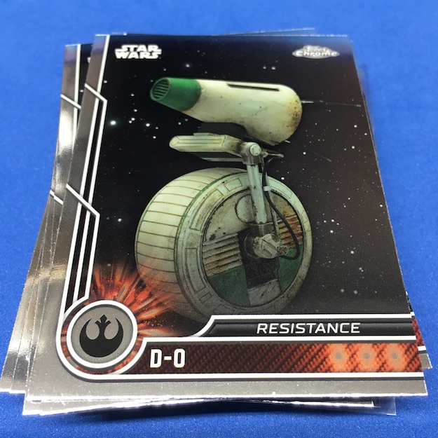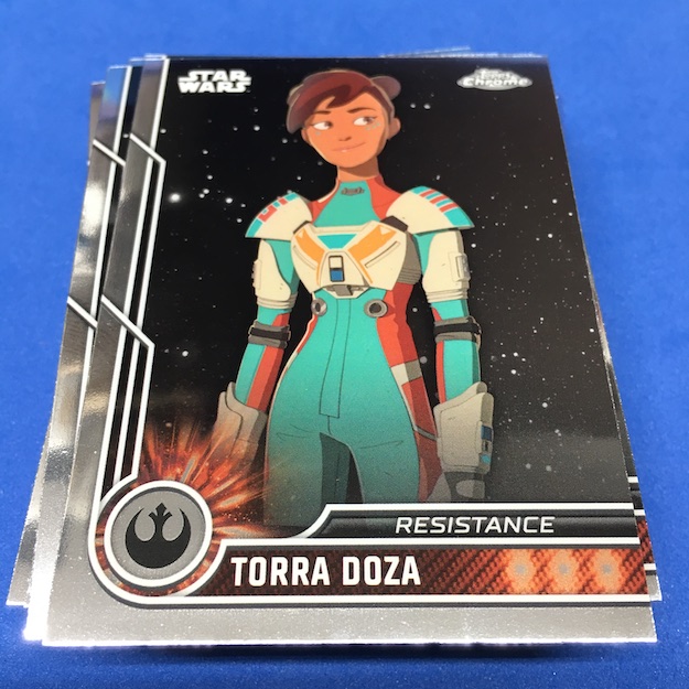 What's Buzz-worthy: The price and size of box here is an interesting one for retail -- 10 packs for just $19.99 which is certainly not the norm for Chrome in any year or type of release. Atop that, it's a small set so you can basically land a third of it in a blaster ... so bad thing, good thing. Had this one been a bigger set -- could easily be done as this one includes characters from all shows, all movies, all eras -- that would be lower but this would still be a good deal on that front. (Most Chrome retail packs have been four cards for $3 or more for a long time ... $2 a pop here is unheard of.) Hit the odds up top and you'll see that pretty much everything was the norm here with the 40th Anniversary card the only tougher find (every third blaster or so) with the Purples seeded as extra cards in their packs. These aren't barren blasters, either, with almost everything possible here but no basic Refractors or multi-person autos or sketches in the mix. Autos aren't easy at one in 1,172 packs (one in 118 boxes) The bargain price gets this one an A in my book for the fun factor -- it's a lot for Chrome at a good price -- but the results will still be hit and miss like many boxes that would be $35 or more if plastic out there. The set is interesting with its depth and that could limit some appeal (I don't really care about the animated series and got eight base cards there) but I think it gets enough others in there that the set works ... I just feel like it needs some extra touches even here. (The Purples are fine but I think something regularly appearing would be better here to add to the feel of it all ... and perhaps in hobby boxes, too.) If Chrome were to start popping everywhere with a configuration like this, I'd be ripping ... even if the autos aren't easy.