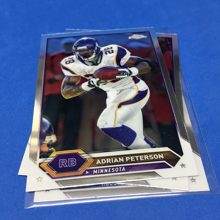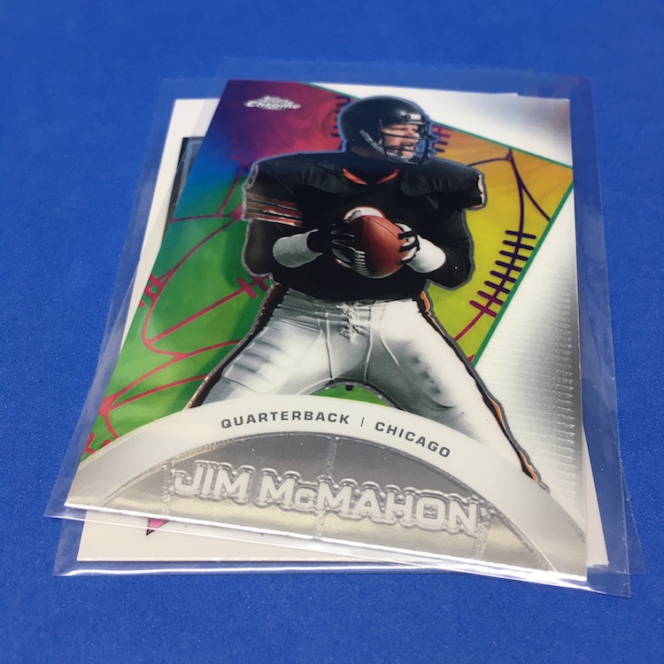 What's Buzz-worthy: This one mostly chronicles past NFL players -- Hall of Famers and past favorites -- on a boatload of card types, while a handful of last year's rookies of note -- some maybe not as notable so far this season -- are along for a late-arriving, unlicensed ride that has some dazzling at all the Chrome and flash. Me? I was surprised by the overall Chrome volume here for sure and it will likely be one where I pick off selected singles once ripped pack volume is high and newcomers grab theirs. (I'll grab mine later when they're looking elsewhere.) This has some good touches on things for sure -- and some misses like the white borders on the 1963 re-do called Heritage this time around. Statistically, it looks like many subsets here are made to land one per blaster -- a good move that should keep some ripping to collect -- while others are tougher finds but just not wowzers to me like the Steve Hutchinson Refractor. There are fine players here on the field for sure (Hutchinson a Hall of Famer) and without a ton of cardboard their presence might spark some added demand. (Though I'll admit I didn't check any ... wait for it ... comps.) There are others in here who are old-timers who have a lot of cards that, well, I really didn't want some of them back when they were active. (It happens, though, with a lot of sets.) ... This particular box included a couple of the key rookies and it delivered pretty well in the parallels and other inserts but for now I'll likely be a one and done as I'm not a regular, heavy NFL buyer any more. The variety here, like Panini's Chronicles, will get me to look later or when I need an affordable rip but the better stuff -- like serial-numbered cards and hits -- are going to be more regularly found in the bigger formats at the link up top. (Some stuff can be found here, too, of course but examine the odds file at the link -- odds are important.) This one packs a lot of Chrome and has a big set size across all the various subsets that feel like multiple insets sets all in one so some stuff may end up being rarer in some instances than people might think but I'll let all that settle itself out and just grab what I like more than grab stuff I think might be big. I think if you have specific players you collect on the checklist this can be a fun one to dig into.