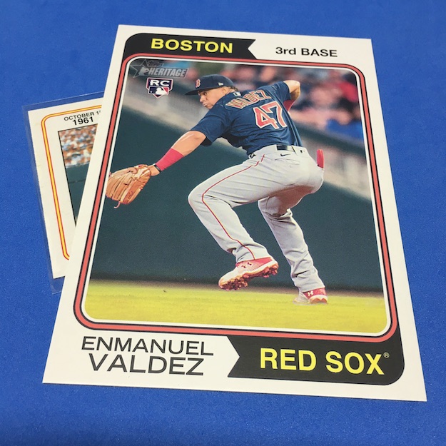 What's Buzz-worthy: Now that these have dropped in price vs. time of release, I bit on a box and ultimately my results were very close to last time -- though no ink in this one, instead an off-centered Relic. My SP in the box? The Judge-Maris card ... that I landed last time. At the cut price, I'll survive. The rookie crop here is aging well on the field I think but since there's plenty made and a typical hobby box delivers nearly a set every time there won't be a lot of big-value RCs here unless somebody truly blows up here ... but as a collector and one who ha enjoyed the old stuff revisited over the years I don't mind this one. ... As I noted last time, this brand is one that might have taken over the old Bowman tagline -- Home Of The Rookie Card -- in recent years and that helped it quite a bit along with a meaty presence of legendary ink for players who were around back during the time of the original set and then ink for the newcomers and stars of now, too. Hall of Famer ink among the Real One Autographs is nil and that really puts even more pressure on everything else if somebody is ripping a case. I'd suspect most boxes are on par with this one but maybe at times better thanks to the SPs. ... Heritage has been around a long time -- and many like it -- but that also doesn't mean it can't be added onto and bolstered in simple ways. This one needed that. I offered more thoughts on that with my first hobby break here.