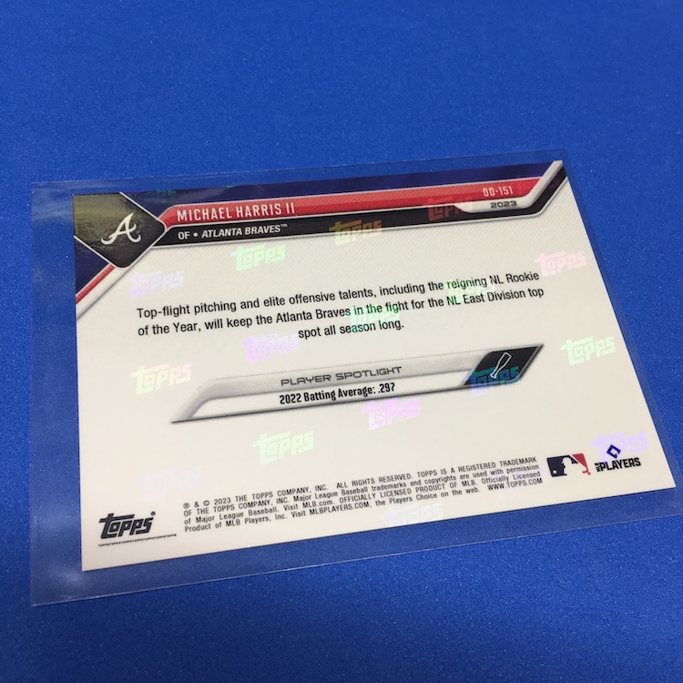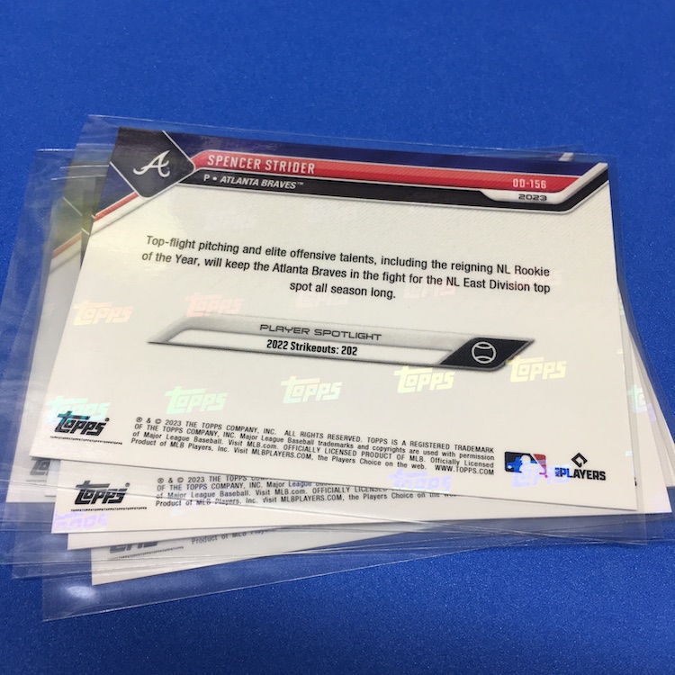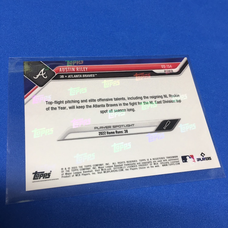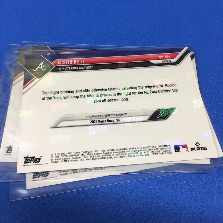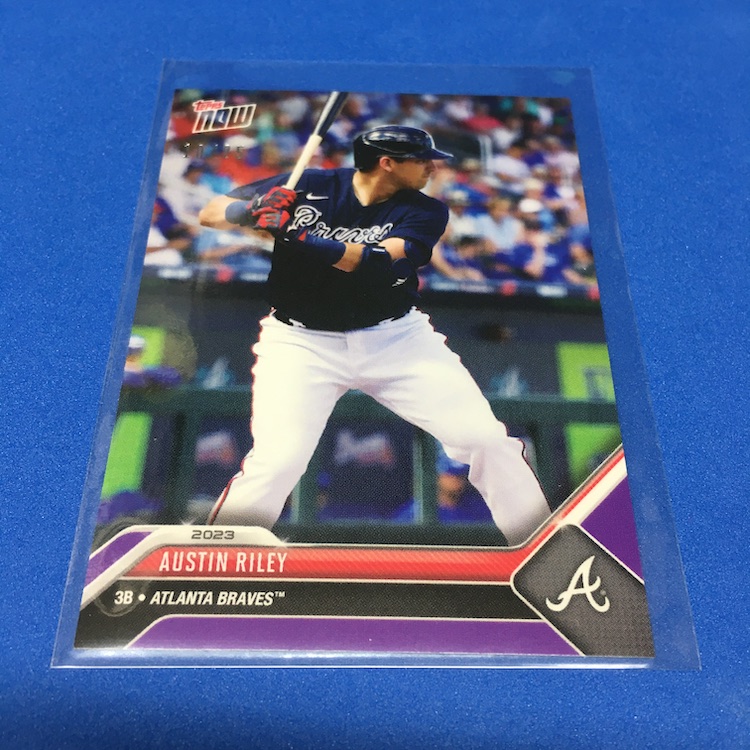 What's Buzz-worthy: Buzz ordered this one in the midst of spring training and it arrived fresh off the truck just today -- but since there's a parallel chase in every set here I figured I'd Buzz Break it. Only 1,023 sets were made for this version and they were $34.99, though I used $20 in rewards points since it's an eligible Topps Now item -- so it cost me just $16.01 shipped. The parallel makes the original price a little risky depending on the team, though not all players had parallels so their floor is higher than it might be with a full array of players. This checklist is strong save for maybe just one or two names overall and parallels were only made for Harris, Acuña, Riley, Grissom and Strider ... so really that's a win at original price no matter who you get (at least for this team). Parallels here were Black (/99), Blue (/49), Purple (/25), Red (/10), Orange (/5) and 1/1 Gold ... so I did better than perhaps the norm here, though I'd probably have preferred some of the other names. (Riley is solid on the field but others are flashier on cardboard.) If any Braves here throw a no-hitter/perfect game, hits for the cycle, has 15 Ks in a game, has a shutout (nine innings) or hits three homers in a game this season, I'll get bonus cards. Spencer alone almost had two of those feats in a single game already this season so I think there's some potential here for more. These sets were not sold sealed so be aware there if you're hunting and didn't order one straight from Topps.