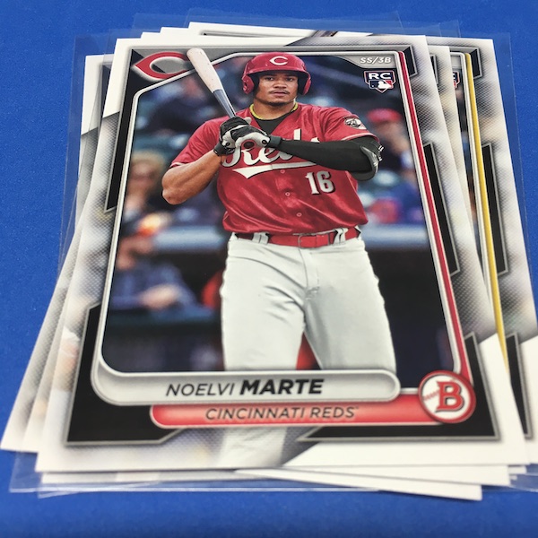 What's Buzz-worthy: My first look at Bowman was one that, just like last year, was intentionally delayed -- it didn't wow me at first but this time a lot of chatter about over-delivering blasters got me to bite on one. This had a similar feel to my lone blaster last year, too, with a mess of All-Stars, some notable rookies and some prospect notables including the biggest name of this past weekend in Paul Skenes on an insert. But ... just like my lone box last year was anything here rare? Not really. The design here is an upgrade over last year for sure -- big improvement over what felt like plain and typical photo framing. ... Just like I said last time, the inserts have some advanced looks to them, though plenty of this one will be made -- perhaps even more at retail to offset the higher hobby costs as the higher those go the fewer buyers will bite there. ... Retail is the home of some exclusive Green parallels and can include autographs (none for me this time) while these boxes can include a number of possible finds at longer odds, including Superfractors -- check the odds at the link up top. This one again will likely be a one-and-done for me unless something really catches my eye here as the season goes on.