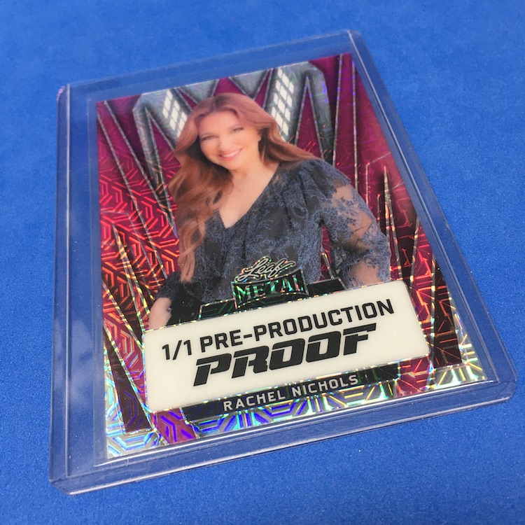 What’s Buzz-worthy: This set is a landmark one with its focus -- a set focusing on women's sports stars and others around the sports realm -- and ripping a box or two is on my radar but, for now, I picked off a small lot of these promo packs as a taste test for how things look in-hand. This one? Former ESPN NBA and NFL broadcaster Rachel Nichols, who is actually a pretty familiar name compared to some in this autograph-loaded release when it comes to the standard boxes. The backs are blank here with the sticker on this one on both sides on the backs for cards that are proofs of the unsigned variety. ... As I have noted before for other Leaf proofs like this, ink doesn't happen here, of course, but a lot of big names are possible and that's part of the appeal to me with these -- the wide array of possibilities with everything being a 1/1. There are some names here with serious collector followings -- soccer star Sophia Smith, for example, has had a lot of these cards sell for more than $50 and as high as $100. She's not alone ... though there are a lot who also don't sell for as much, too. ... There are many varieties per card with all the colors and textures and in this case the proofs are not in stickered-shut top-loaders this time -- that might tweak the feel here slightly -- but overall, I like this approach as it's something that could trend affordable while remaining unique and something that could pique the interests of a lot of collectors out there. There's a lot to find here as you'll see in my upcoming packs.