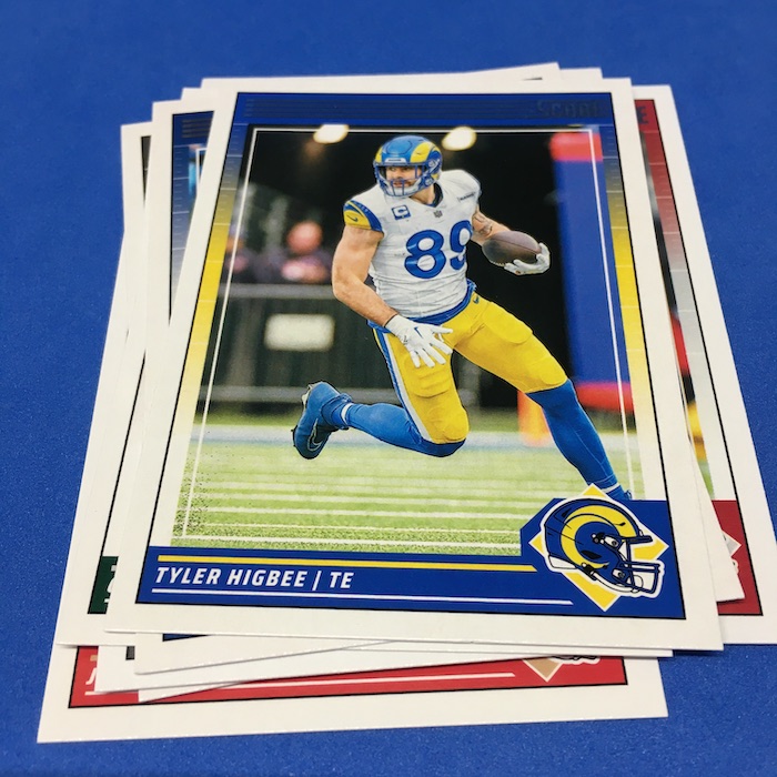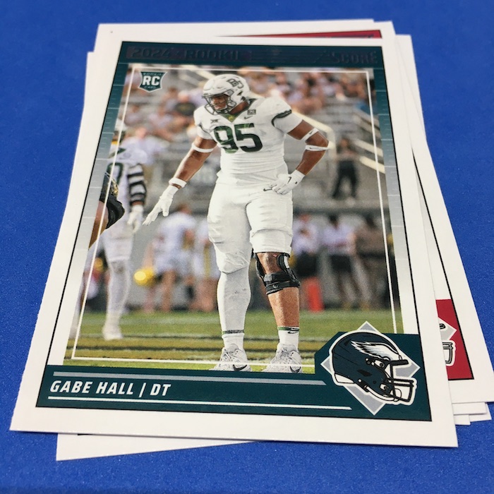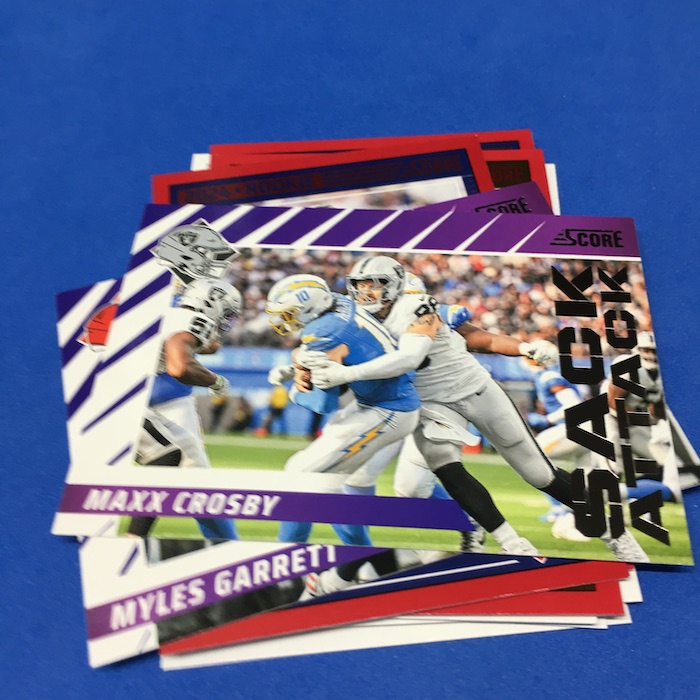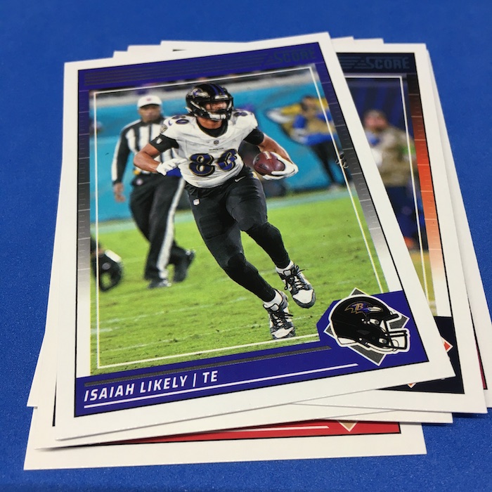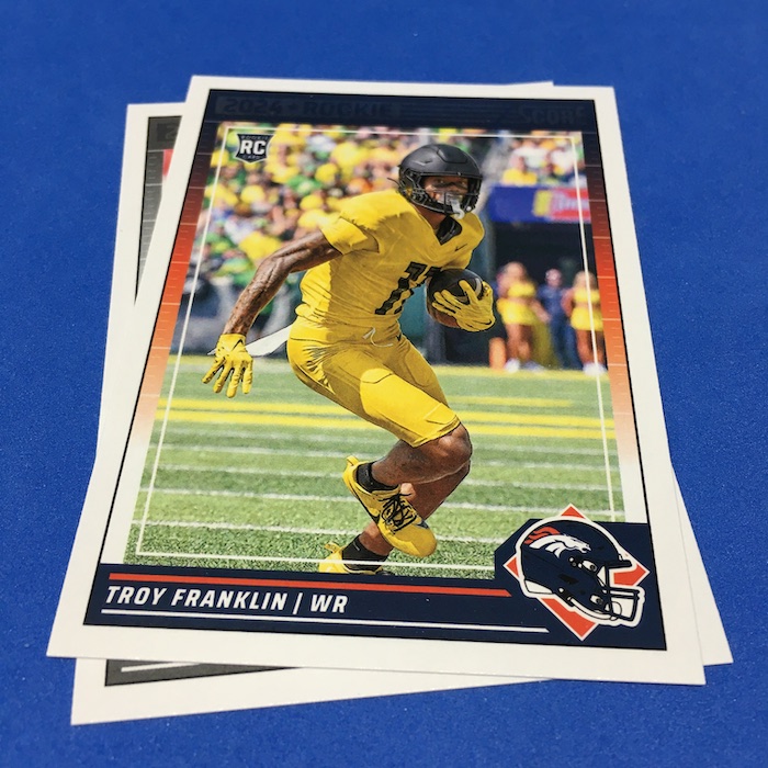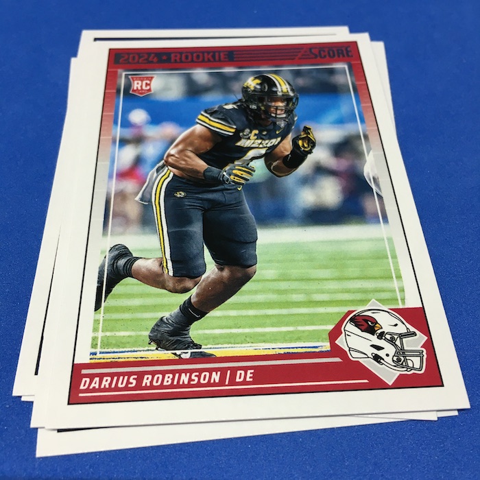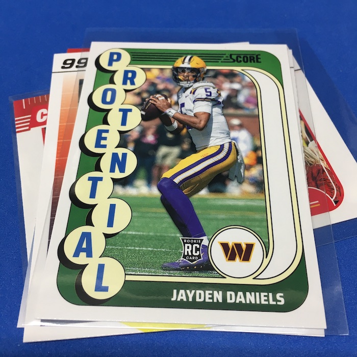What's Buzz-worthy: I'm again making an effort to dabble with small pack breaks here -- call it a New Year's Resolution a little early -- though it's more for a couple practical reasons. One, with all the big SRPs on boxes these days there just aren't that many brands -- fewer and fewer really -- where I'd commit my collecting dollars to a big box without some bigger return ... and I have to actually like something a lot there, too. Secondly, the hit factor -- there isn't enough juice in a lot of them for my taste (and a hit is an autograph or memorabilia card not an insert or short-print ... I expect those, too). Hits aren't going to be a routine thing here in this format but at least the price is realistic and the variety is high ... so a smaller pack break is more of a pure for-collector response from me. I didn't land anything truly big here -- even for this brand -- but there were key names in all spots -- Rice, Bowers, Mahomes and Daniels for starters -- to make it feel like a decent pack for a collector who likes good names and fun cards and isn't worried about immediate value. ... Just like last year, Score packs plenty of inserts in a pack, while the base set works in past stars among the first 300 with the last 100 players being rookies. It's not the crispest package of stuff but I have definitely seen rougher options with higher prices attached. As a collector, I'll probably dabble here more. If you like this one and want a bigger bite, hit the link pop top for a lot more and guaranteed hits. If it dips, I might.