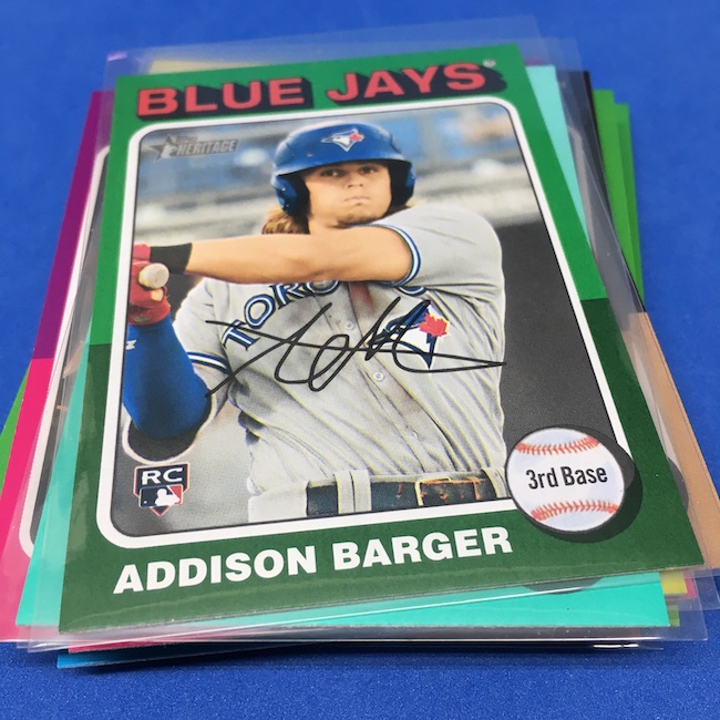 Green parallel (3) – Addison Barger, Kenley Jansen, Jordan Hicks (errant White Border notation on back)