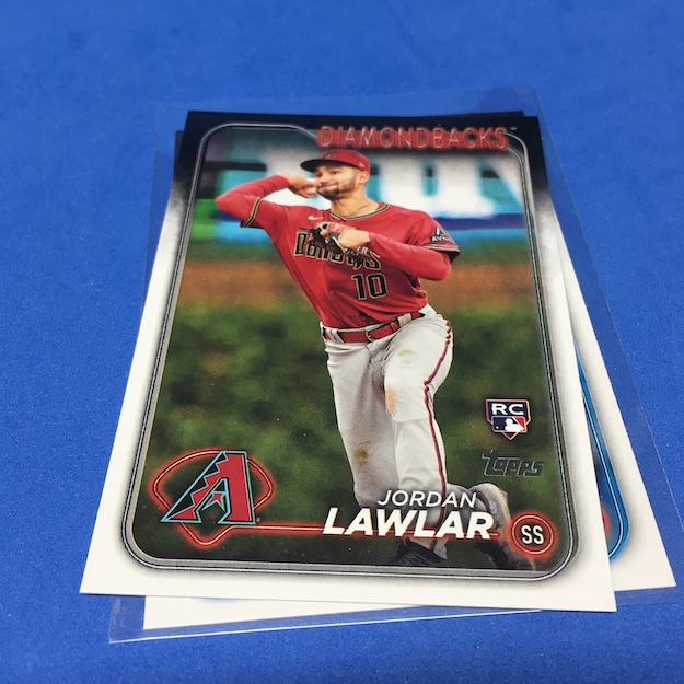 What's Buzz-worthy: My second look at this format this week didn't include as many inserts this tine and it didn't yield a much-rarer parallel of a insert like last time but this one was an oddity with more than double the volume of rookies -- seven last time, 15 this time. My favorite card in this one is the Yamamoto, while Freddie Freeman and other Dodgers continue to follow me left and right in recent rips. All in all, this one is probably average but I'll bump it up to a B with that 1989er since I like it. ... As I noted before, the neon is back and this one already has captured attention -- rightfully so -- with Jackson Holliday SP variation cards that are an homage to the 1989 Fleer Billy Ripken "Face" card that's replayed here as "Fun Face." All that, I dig ... but what happens when you land none of that? Well ... not that. The foilboard-like neon approach is back but it's also perhaps not as clean as Series 1 with corners -- especially corners on parallel cards and foil inserts on the outsides of packs -- and some top/bottom denting issues that I also spotted in Heritage. (It's somewhat common ... but I would prefer it not be there at all as I'd like to grade good finds here.) ... The highlight here is the simplicity of touches in the base set, which is printed with a foil effect that makes the neon highlights here pop -- it's like it's on foilboard but not for the whole image like those parallels -- and the printing here is crisp and sharp for the most part but I did again see a few kind of washed-out cards among the base here and there that made me wonder how they might age. So far, the bigger formats at retail have looked to be the best ones for this release. I'll do one of those next time ... perhaps next week.