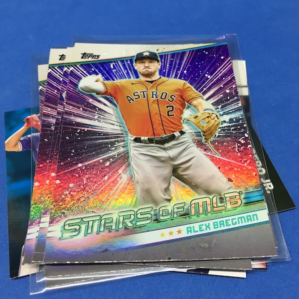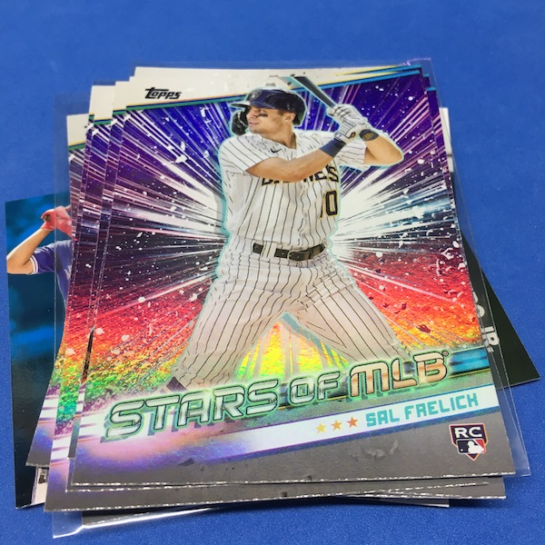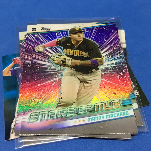 What's Buzz-worthy: Remember last week when I ripped into some hangers of this one and I noted how Freddie Freeman and other Dodgers were coming out of this one heavily? Check out this box ... a bit nutty but I'll take it. The Relic and the Purple are both tough pulls (see box grade for those numbers below) while the run of 1989 foil cards was strong for both the past and present. Throw in some good names on Home Run Challenge cards (though both are having bad years) a color-match of sorts on a Texas Rangers World Series card parallel and then some more Dodgers among the retail-only inclusions here and it was a solid box. A solid box for me to end on with retail dabbling here. The last time I opened one of these, I landed three serial-numbered cards and marveled at the odds. This time with a hit and a rarer retail-only parallel only found here I marveled in a different way ... I still think neither of these card types needs to be that rare and together, if sold, wouldn't pay for half of this box. Now there's some safety in numbers for this one ... but as a collector it's a solid box for what it is. ... As I noted last time, it was a fun rip for all that variety and potential but when I was done the base stack was really not that impressive and the meaty insert stack was nice -- way better than other retail formats. This release is perhaps not as clean as Series 1 printing-wise as corners -- especially corners on parallel cards and foil inserts -- showed issues and there were some top/bottom denting issues. (It's somewhat common ... but I would prefer it not be there at all as I'd like to grade good finds here.) I think this format is the way to go if you're not doing a hobby or jumbo box.